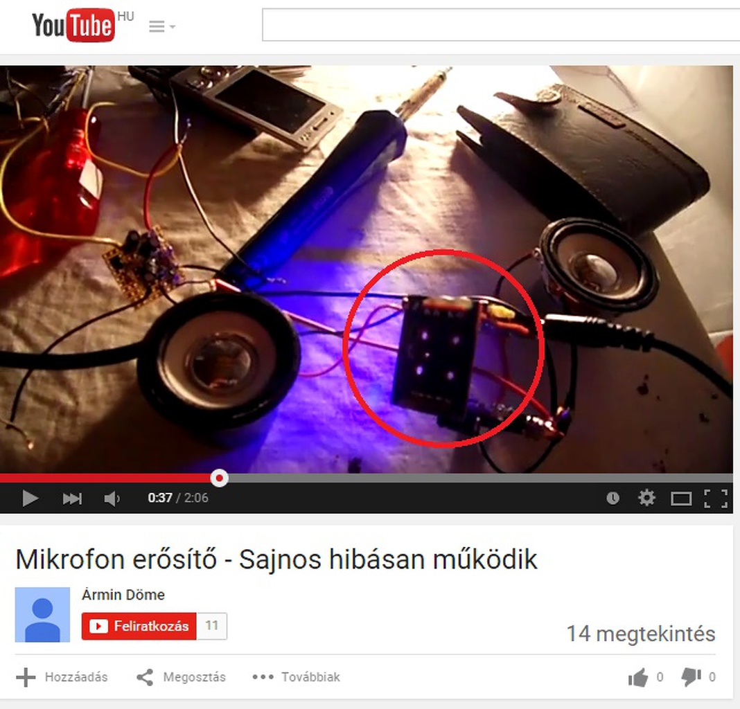 Van itt mikrofon, ahogy néztem a videót az van bekötve a kapcsolásba. Utána van még valami, azután a hangszórók.