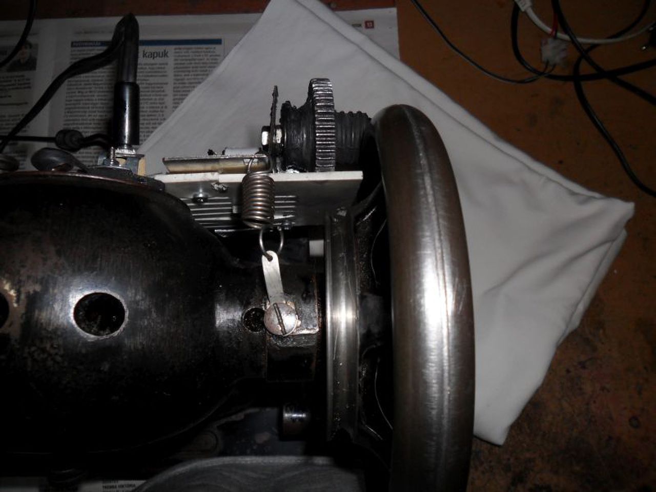Egy kis korrekció. Nem feltétlenül kell oda 100 W motor. A gördülő csapágy, és a forgó részek centírozása csodát tett. Már annak a kis kínai varrógépnek a 6W-os adapteréről is megy, olyan 20 W körül már lehet varrni is vele, de 50 W-nál több most már semiképp nem kell neki.