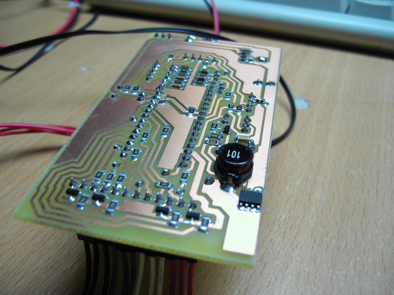 ![]() A gyártás előzményeiről itt található néhány kép, még néhány furatszerelt kondi és a csatlakozók hiányoznak a nyákról.