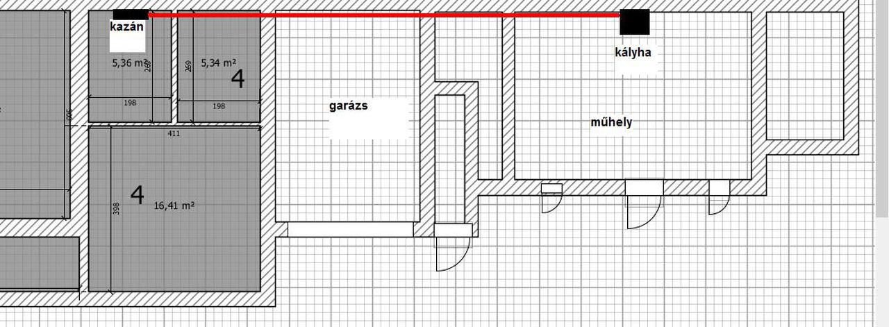 A kazán és a kályha között, ugyanúgy a kissé fűtött garázs van, hogy azért ott se legyen az a minusz fok.