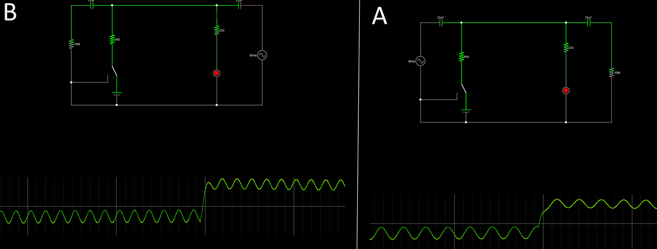 Összeraktam szimulációban, "A" jelűn az általad rajzoltat, a "B" jelűn pedig a visszirányt. A "B" jelű a mikrofon esete. Így kell kinézni a jelnek?