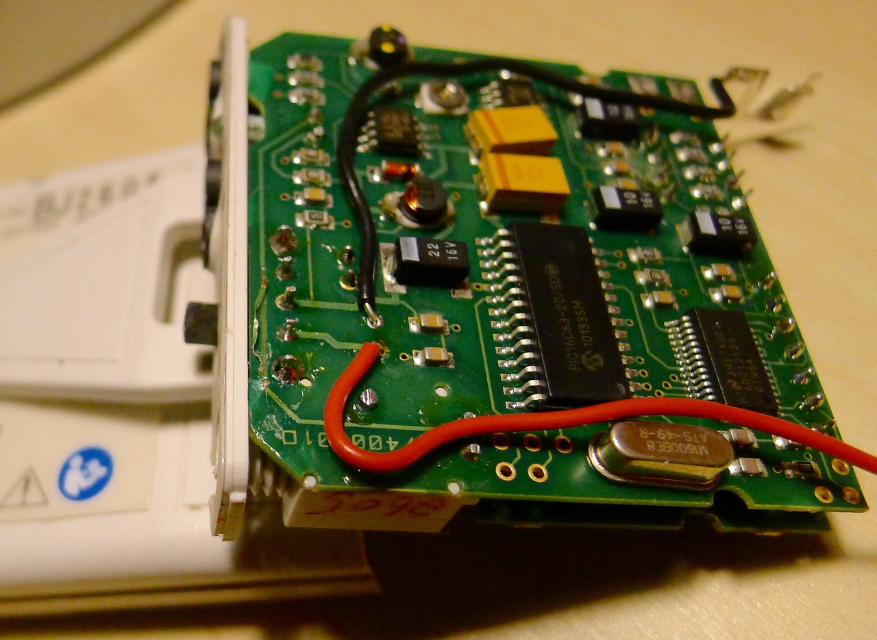 Az egész teljesen száraz már, nem lehet tovább törölni... a led működik, de kicist mintha pislákolna, nem az igazi stabil fénnyel ég. Maga a szerkezet is működik, de nem stabil, néha fura jeleket küld. A vasmag ha sérült gőzöm nincs hogy sérült, de talán azzal nem lesz gond (remélem). a vezetősávot csak kicsit megpiszkáltam, hátha segít, ennyi volt eddig az összes beavatkozásom.