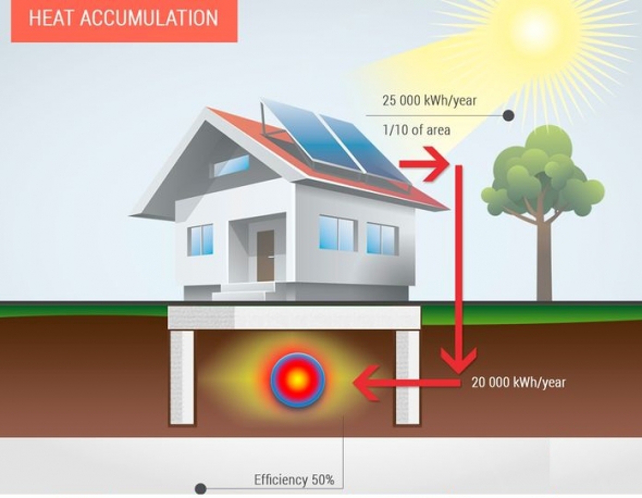 Ez a Zsolnai műszaki egyetem projektje amivel megnyerték a Startup Awards 2014-et. A lényeg hogy a fűtési szezonon kívüli időszakban napkollektorral és/vagy napelemmel hajtott hőszivattyúkkal felfűtik a ház alatt levő földréteget ami nagyon jól van szigetelve oldalról és felülről. Alulról nincs leszigetelve mert ott kicsi a hőveszteség. A szezon alatt elveszti a hőenergia 50%-át de még így is annyi marad hogy simán elhúzza a padló/falfűtést. Mondjuk én utánaszámoltam és ha föld/agyag helyett víz lenne mondjuk egy medencében a pincében akkor 2-3-szor nagyobb lenne a hőkapacitása, de gondolom így sokkal drágább is lenne.