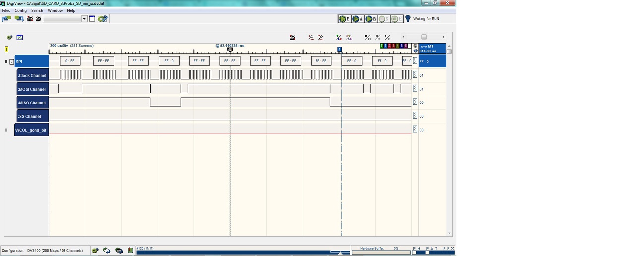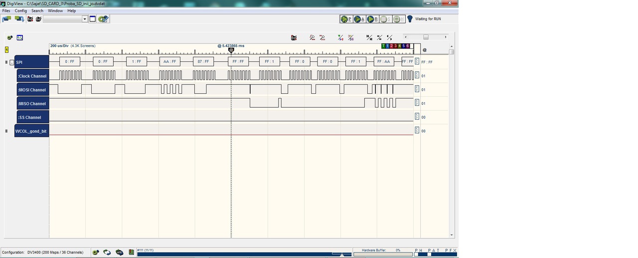 Gond lehet, hogy hosszú vezetékkel van csatlakoztatva a kártya foglalat, most készítek valami próbapanelt és azon fogok mérni... Ha megnézed az előzőekben mellékelt logikai analizátor diagramokat, abban látszik, hogy mit ad ki és mit kap, aszerint (úgy látom !) jó a kiadott jelsorozat!