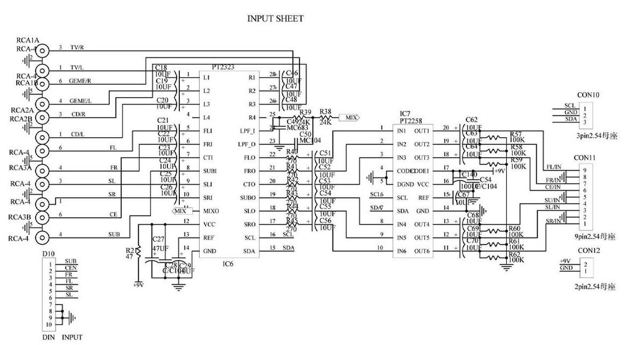 Szeretnék arduinoval vezérelni egy PT2258 és PT2323 IC-t. Említett eszközök I2C-n kommunikálnak. A 60 napos leckében ezen a fejezeten túl vagyok, de nem látom át, egészen, hogy hogyan fogjak hozzá egy I2C eszköz illesztéséhez, vagy az adott funkciók elvégzésére hogyna vegyem rá. Az egyik eszköz egy 6 csatornás választó és 6 csatornás hangerőszabályzó. képen látható hogy kapcsolódnak egymáshoz, de mindkettő külön vezérelhető. Szeretném a hangerőt rotary encoder-rel változtatni, és nyomógombbal a csatorna választást vezérelni. Jelenleg Mega-m van, de ezen feladat ellátására vagy minit, vagy nano-t akarok használni majd. Mellékelem a két IC adatlapját is.