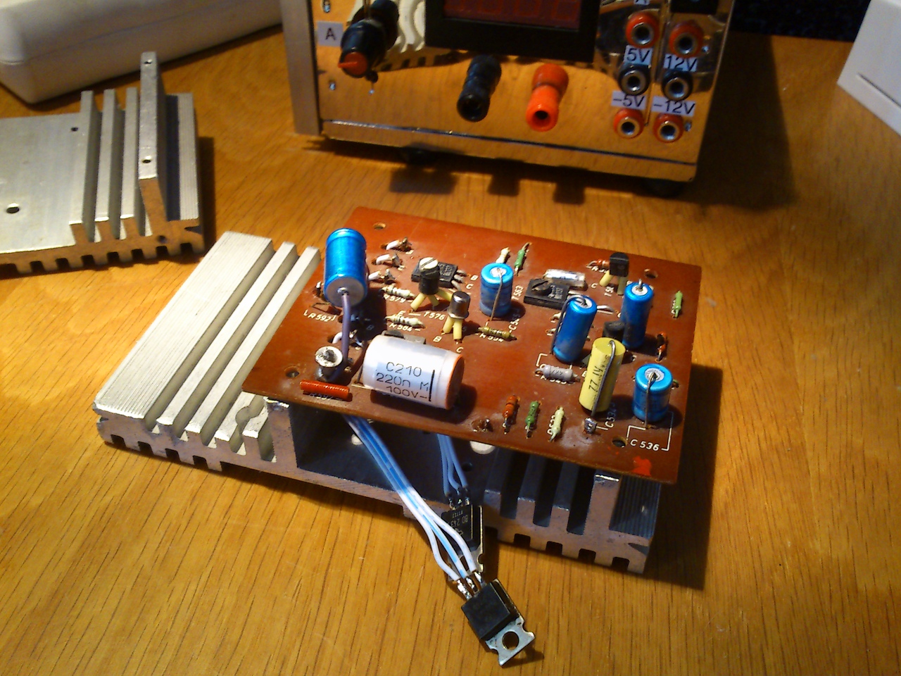 A kérdés már csak a bekötés lenne... A bemenet talán megvan, a nagy sárga kondi előtt. A kimenet a kollektorokról jön le két (kicsi) tekercsen keresztül.