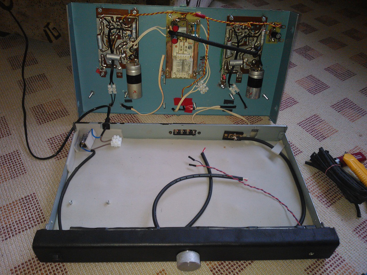 Első csöves építményemet szeretném bemutatni ami nem más mint egy ECL86 Se erősítő. Az egész projekt két teljesen kifosztott (csak a áramköri lapok voltak meg) R4900 Melodynnal és egy Unitra Szilézia trafóval kezdődött. Ezután készítettem hozzá egy csöves tápot és már szólhatott is a zene. Ez vot a könnyebb része, a dobozolással szenvedtem meg igazán. Bár a belső nem túlzottan bizalomgerjesztőbb, de legalább nem is brummos amit sikernek könyvelek el