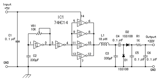 egy olyan kapcsolásra lenne szükségem ami +12V-ból 30-40V-ot csinál max 20mA mellet, találtam is 1 rajzot, probléma annyi hogy ez 5V ról megy. 7414 cseréje 4011-re gondolom nem oldaná meg a problémát.
