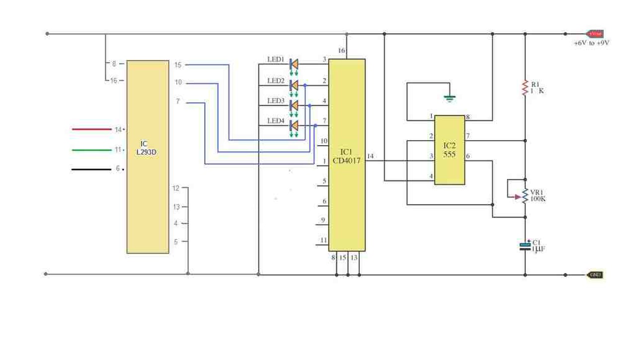 Megpróbálnám a "Trislogó"-t erre használni. Az olyan mint a Proli007 féle két ledes villogó másképpen, csak három LED-el. A sebességet a közös bázis feszültség állitásával lehetne állitani...