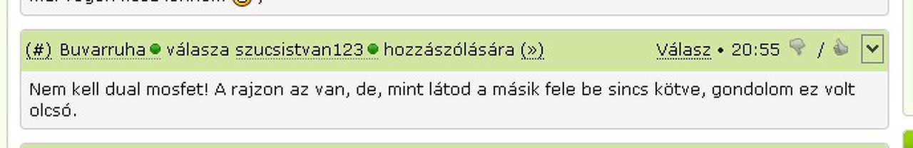 Ezt a hozzászólásod Sajnos nem láttam.12V ról megy majd. Akkor egy kisebb P csatornás mosfet is megteszi? (Mint pl EZ?)? Most már minden tiszta! És igen! Felismerek egy tranzisztort! ![]() Elnézésedet kérem, ha felidegesítettelek, de ez ma nem az én napom. Úgy fáj a fejem ettől a ro*adt melegtől, hogy nem tudok koncentrálni!