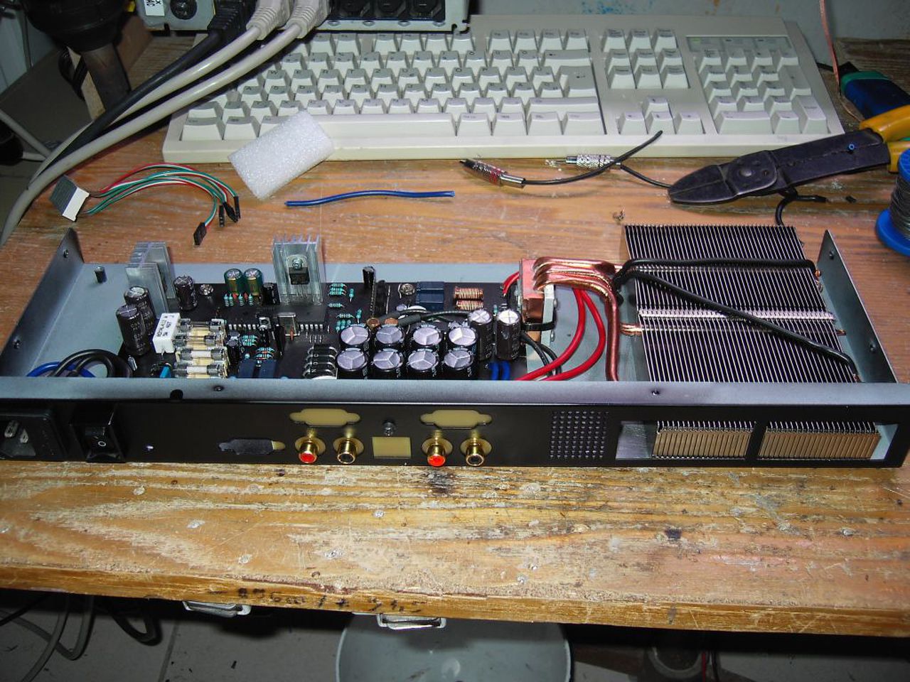 Az erősítő egy tda7250-re (2x100w) és az előerősítő LM1036N-re működik. Az előerősítő külön trafóról üzemel.