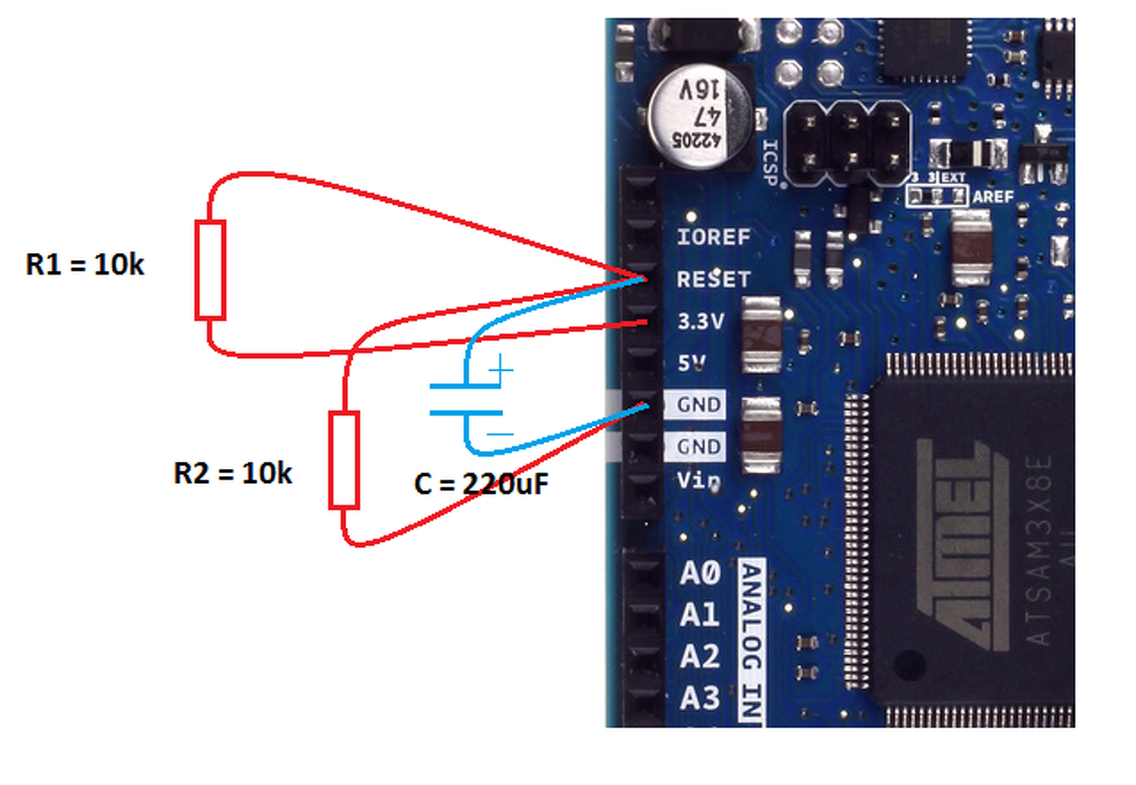 Most néztem a schematicot, a Reset lábat 1K keresztül vezérli a mega16U2-es.