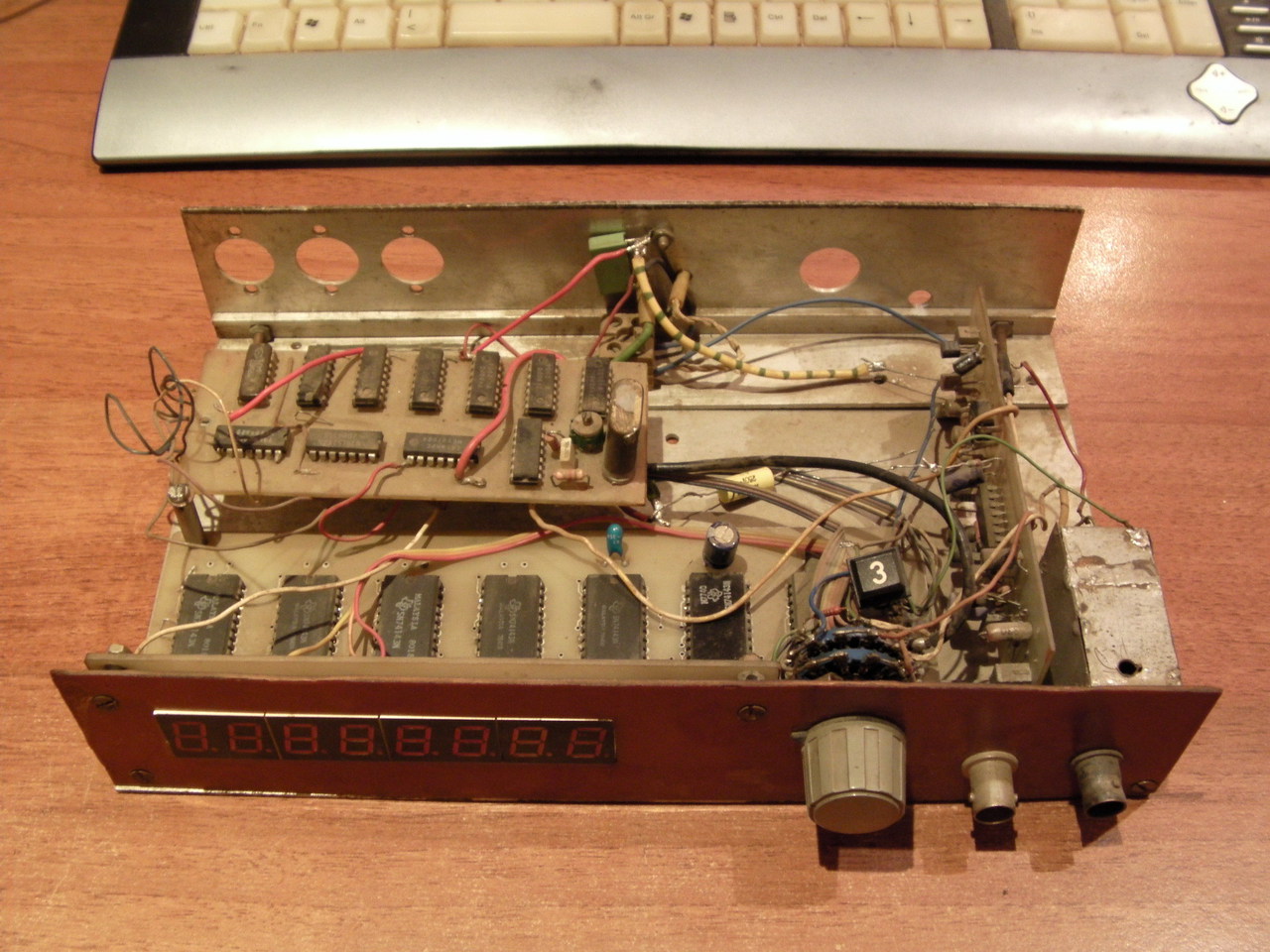 Életem első sajátkészitésű frekvenciamérője keresi új türelmes gazdáját aki hajlandó kibogarászni eme *szörnyeteget*.