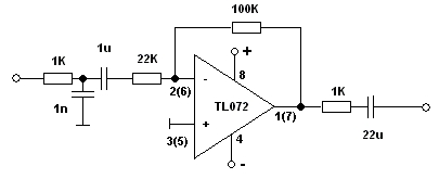 Ez a kapcsolas invertalo erosito tehat fazist fordit. Viszont egynel nagyobb az erositese igy nem megfelelo arra a celra amire hasznalni szeretned. A visszacsatolo ellenallas es az invertalo bemenetre kotott ellenallas erteke egyezzen meg mert ekkor lesz 1x-es az erosites es neked pont ez kellene. A kimenetre nem kell az 1k-s ellenallas es a 22u-os kondi sem felteve ha nem hosszu arnyekolt vezetekkel kotod ossze a ket fokozatot es a vegfok bemeneten van csatolo kondi. A tapfeszultseg legyen kettos, kb. +-12V-15V koruli.