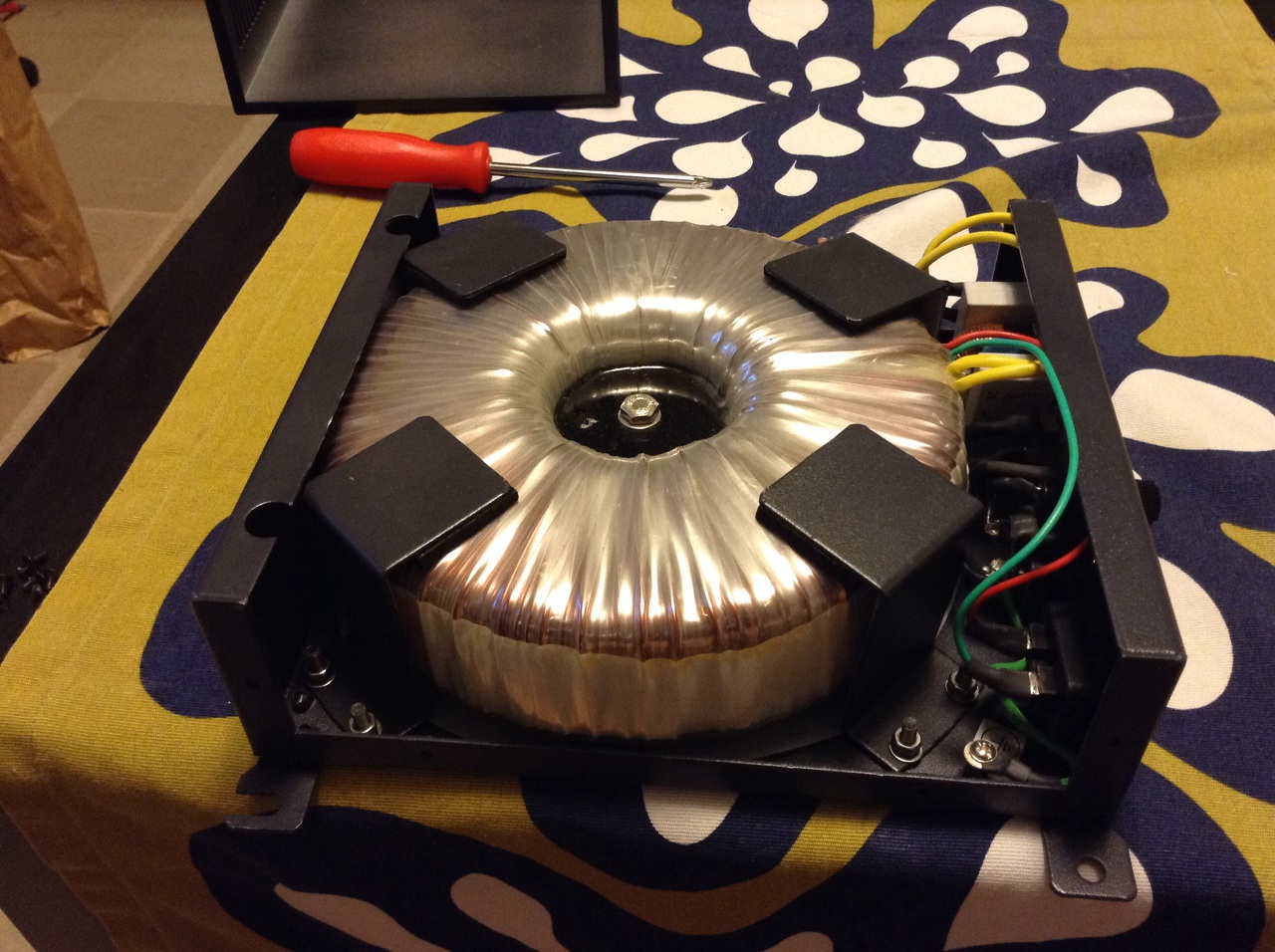 Sziasztok. Bemutatom műhelyem legújabb lakóját egy 230v-os leválasztó trafót. Mivel hálózatról működő kapcsitápot építek, ezért muszáj volt beszerezni, mert különben oszcilloszkóppal nem tudok belemérni. Terveim szerint kiegészítem még egy két dologgal, de ez még a jövő zenéje.