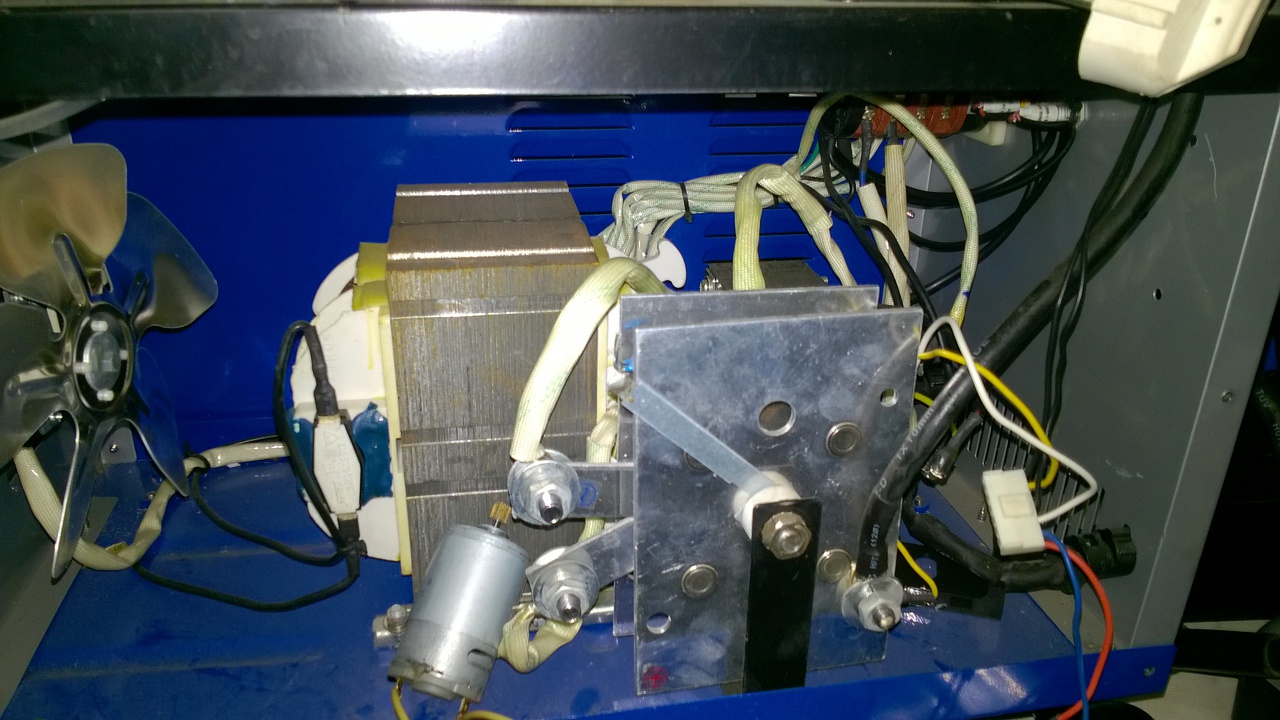 Egyfázisú gépnél komoly kapacitás simítja-tárolja a hegesztőáramot. Ha nem működik a kondi kisütése, összeégetheti a drótot. Valahol kell lenni egy kisütő ellenállásnak és nem árt egy relé (mágneskapcsoló) érintkező, ami rákapcsolja.