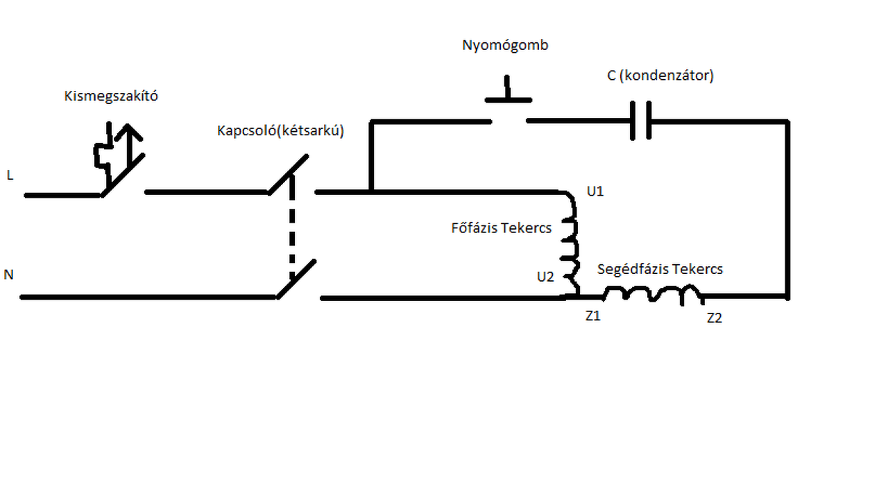 Lennie kell egy közösített Cx-Пx pontnak. Valamelyik főfázis vége össze van fogva az egyik segédfázis véggel.Ide kösd a kapcsolón átmenő 230 V egyik ágát.