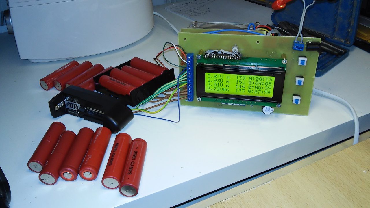Posztolok én is valamit, elrettentésképpen. Ez egy 4 cellás lithium ion cella kapacitás mérő. Fix 1A-rel merít, ezt tartja is a merítés végéig. Az áram potival kalibrálható, egyszer kell elvégezni. Kalibrálás után beállítható kisebb merítési áram is 10bit felbontásban. A lekapcsolási feszültség jelenleg 2.75V, de ez is állítható. Méri az időt, a cellák egyenkénti feszültségét, csipog, ha készen van a merítés. Kijelzi a mért kapacitást, az aktuálisan átfolyó áramot is. Pontosságra 5%-ot saccolnék, ez szerintem bőven elég egy ilyen szerkezethez (+-50mAh egy 2200mAh-s akksinál). A venti fordulatszámát is tudja szabályozni, mivel egy DS18b20 van közvetlenül a melegedő alkatrészeknél. Ami melegszik: 4db 1ohm ellenállás, és 4db TIP120 vagy 121 darlington, így a szükséges bázisáram is a cellából folyik, nem a 12V-os tápomból. A 4-es elemtartó mellé bekötöttem egy univerzális típust is, így kisebb cellákat is (AA méretű pl.) tudok tesztelni gond nélkül. A cellák feszültségének egyik potenciálját az elemtartónál veszem le, a negatív pólust pedig 4-5cm-rel távolabb, már a nyákon, így 0.05V feszültség esés jelentkezik 1A esetén. Szoftverből korrigálható lenne, esetleg 1.5-ös vezetékkel bekötve csökkenne ez a hiba, de így marad. Négyvezetékes megoldást már túlzásnak tartottam. A cellák merítése egyenként indítható a gombokkal lehet navigálni köztük. Nem lett szép, de hasznos kis szerkezet, gyorsan elintézi a cellákat. ![]() Amit elfelejtettem: Atmega328 a lelke az egésznek, belső 8MHz-ről ketyeg. A hozzászólás módosítva: Jan 22, 2017