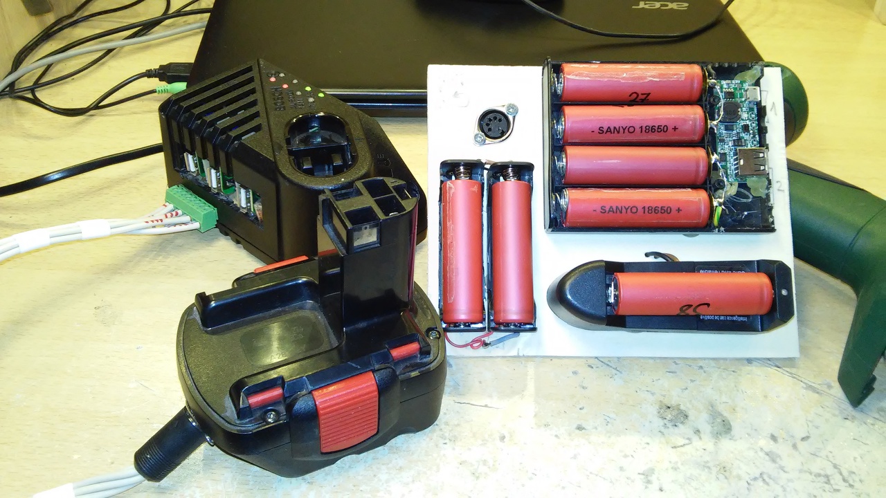 Átalakítottam két csavarbehajtót lithium ionosra, és kellett hozzá valami töltő is. Az egyik dobozába belefaragtam 4db 5V 2A-es tápot, és 4db TP4056-ot, a LED-eket kivezettem az előlapra. Mind a 4 töltő külön-külön ki van vezetve oldalra, dugdosható sorkapocsra, így lehet variálni, hogy sorba legyenek a töltők kötve, vagy kettő-kettő párhuzamosan, aztán sorosan, stb. Az akksiba 3S2P elrendezésűek a cellák, 4.4Ah összesen. Ugyanehhez a töltőhöz készült egy 18650 cella töltő lap, itt csak fel vannak fogatva a foglalatok, kettő párhuzamosan kötve. Elkészült még egy eszméletlen hasznos lámpa, Darbin Orvar youtube videója adta az ötletet. Át lesz még kicsit alakítva, kap önzáró- és szárnyas anyát, plusz a vezeték el lesz rendesen rendezve. 12W-ot fogyaszt, és 12V-ot kér. A hozzászólás módosítva: Jan 23, 2017