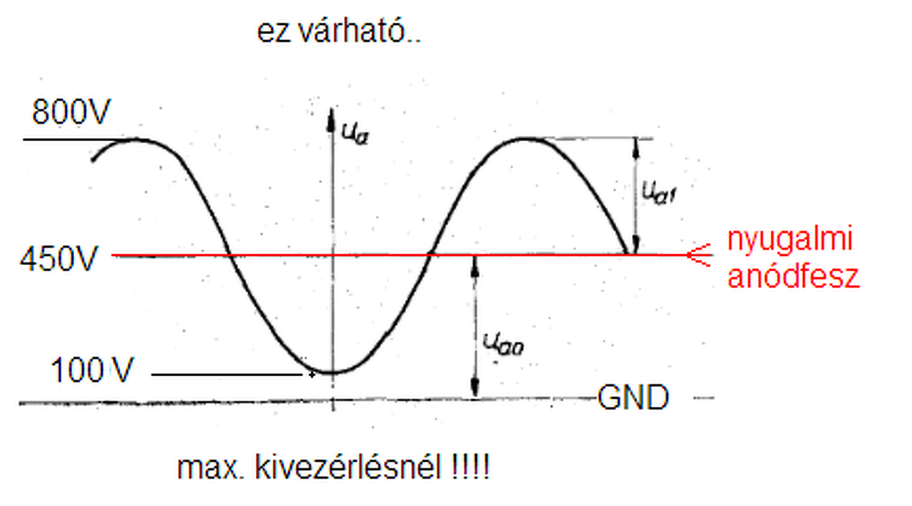 Tekintettel arra, hogy itt jóval több kHz-es áram is szaladgál és a táblázat sem érvényes 400 Hz felett, valamint nem a nyugalmi, hanem a kivezérelt cső anódfeszültségéről van szó. Tévedések elkerülése végett írom le és csatolok be egy kis ábrát: transzformátoros, hasonló jellegű áramkörökben a kollektor, drain vagy anód PILLANATNYI feszültsége a tápfesz kétszereséhez közelít maximális kivezérlés esetén. Egy torzított állapotban még több is lehet a csúcsfesz.. Lehet szőrözni persze az abszolút értékek esetében, de van szakirodalom ebben a tekintetben is, ahol a miértek is le vannak írva. A skiccen a feszültség értékeit ennek megfelelően, arányosan kell értelmezni a tényleges mindenkori tápfesz függvényében. Vitázni pedig nem óhajtok senkivel, meg lehet próbálni méréssel.