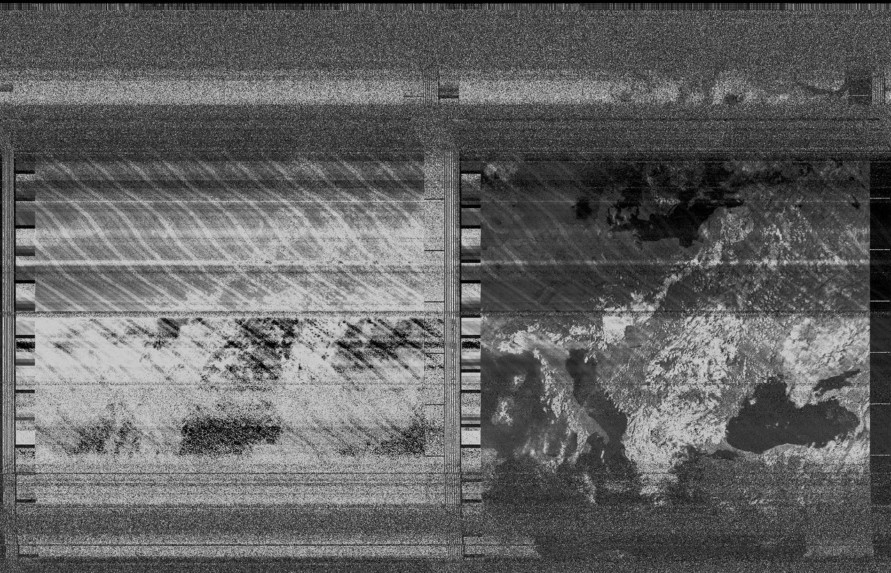 Néhány perccel ezelőtti kép a NOAA 19-ről. Most közvetlen géppel vettem fel, és WxtoImg-vel dekódoltam.