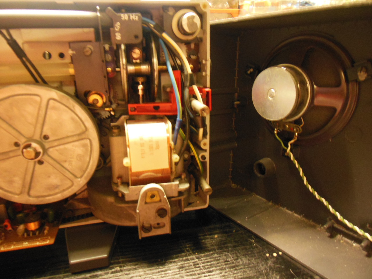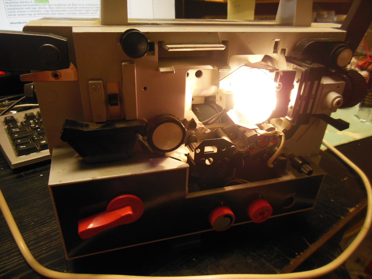 Igen, ez a 16-os "újabb": 1975-76 körüli. Meoclub 16 névre hallgató csehszlovák gyártmány, mágneses és fényhang leolvasóval. Ebben már nem fotocella figyel, hanem 1PP75 típusú fényellenállás. A mágneshang olyan, mintha magnószalagot használna: legalább 14kHz a felső határfrekije, szemben a fényhang szerény 8-10kHz-ével.