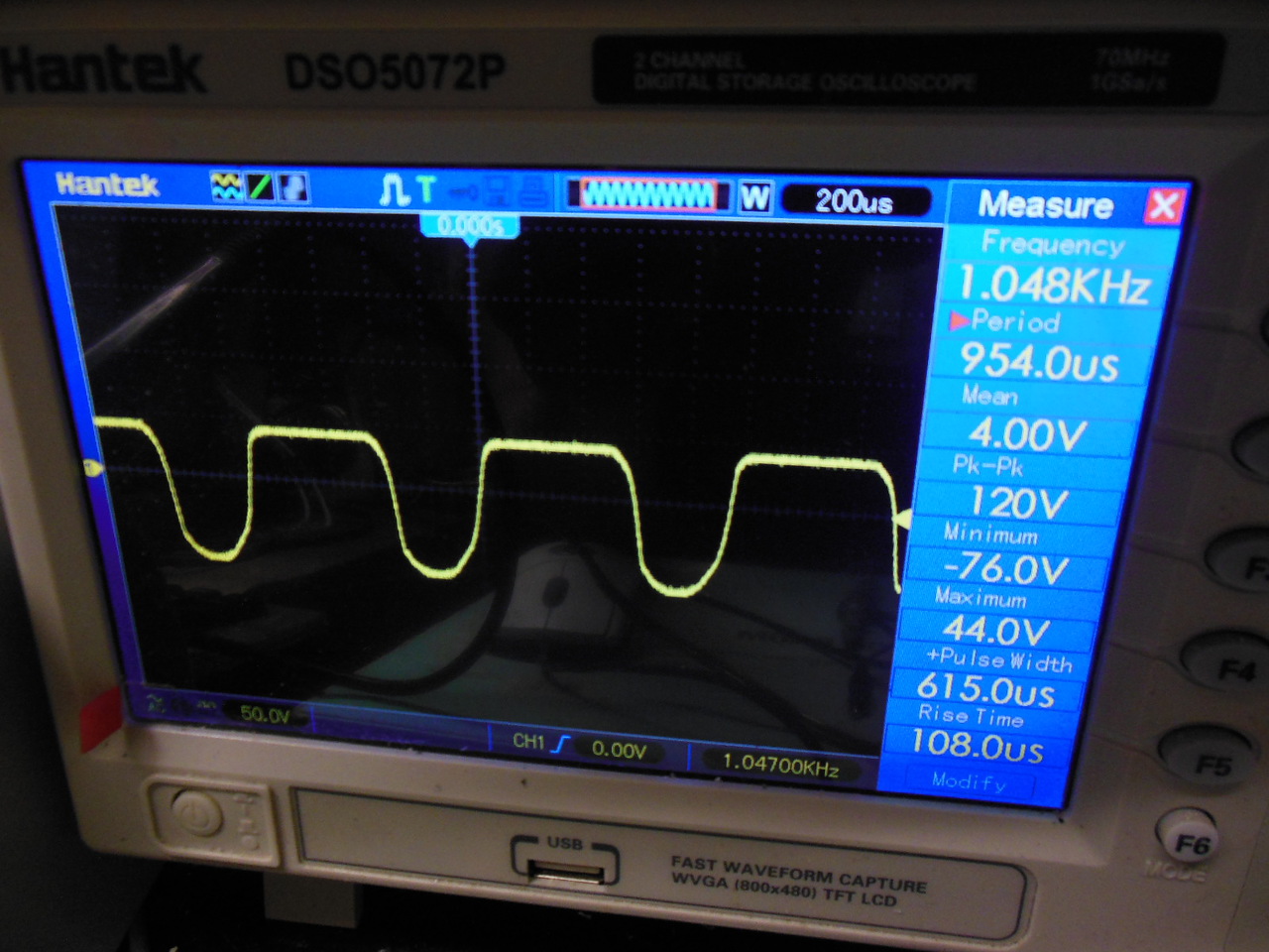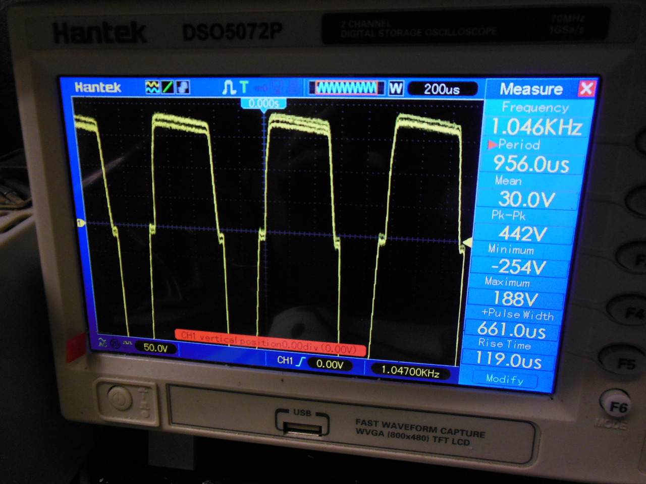 Ezvan a kimeneten maximum kivezérlésen. Ilyenkor a bemenet a régi, 700mV. (1. kép.)