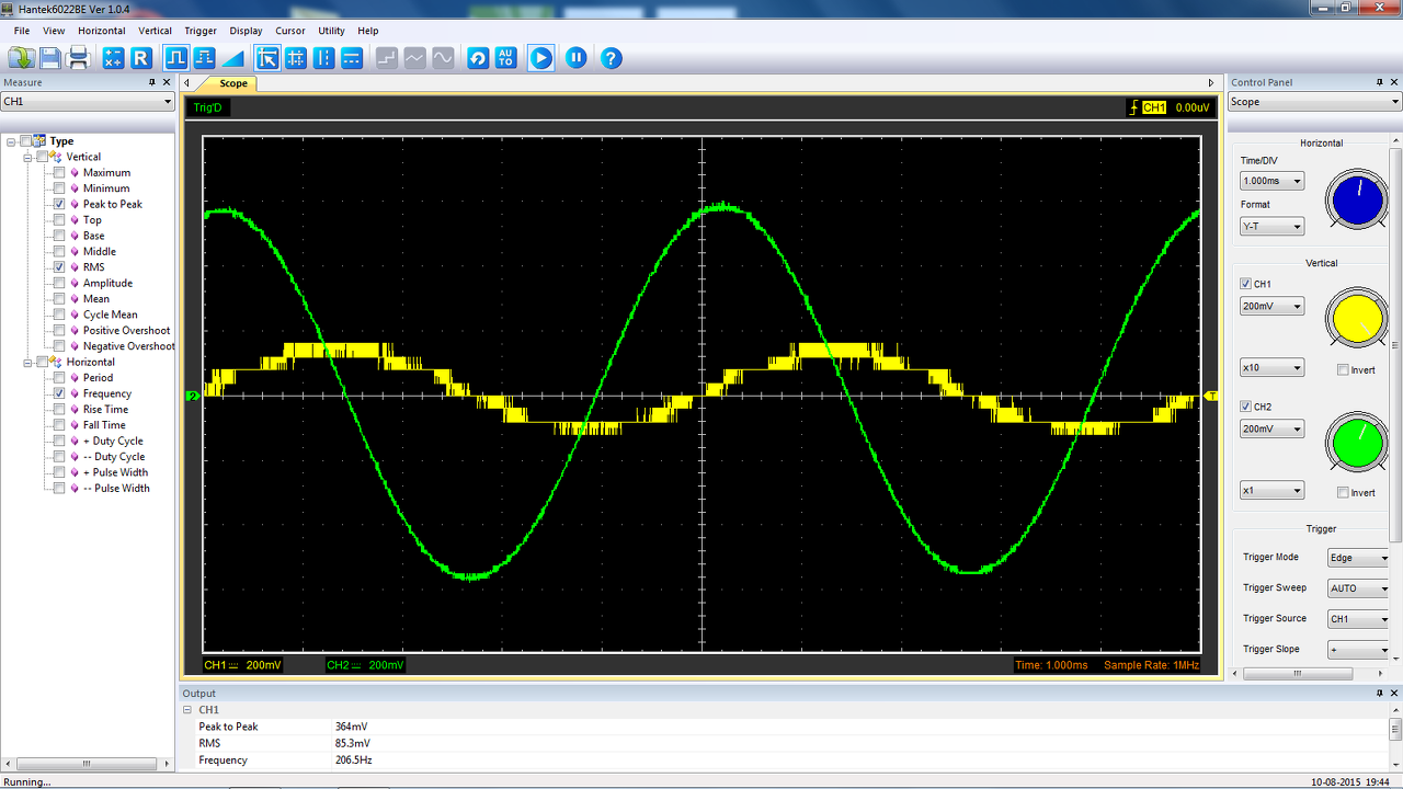 Ilyen szkópom nekem is volt, vagy hasonló? Az első szkópom volt. Utána jött a velem egy súlycsoportba eső EMG 1555 ami alatt az asztal is nyekkent... Rafinált a szoftwere, mert X1 és X10 beosztást a programba be lehet ugyan állítani, de az nem a bemenetet váltja ám át, hanem csak a szoftver fogja X10-nek megfelelően kiírni az értékeket, ha a mérőfejen is X10 osztót használ az illető, ne kelljen már 10-el fejben osztani-szorozni. De emlékeim szerint tudott ez még X50-et meg X100-as osztónak megfelelő kijelzést is, ha netán a felső vezetéken akarsz jelalakot mérni!