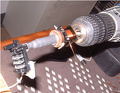 Jelentős tekercselési gyakorlat birtokában mondom, hogy induláskor, és sorvégnél, illetve a szigetelés berakásakor elkerülhetetlen a lassulás (szinte néha hullára meg kell állni). A sok állítási lehetőség -próbálkoztam ilyennel magam is- nagyon zavaró tud lenni. Nálam az vált be a legjobban, mikor csak egyetlen üzemközi állítási lehetőség van, ami a tekercselő tengely fordulata, és ezt is lehetőleg lábpedállal, mert így minden kéz szabad tud lenni. E miatt a tekercselő tengelyhez kell kötni az előtoló fordulatát, ami csak a huzalátmérőtől függ, és beállítás után már nem változhat az áttétel a fordulat arányában. Ezt leginkább fix fogaskerék-rendszer tudja biztosítani, mint pl. az esztergáknál is használt "meander" művek. Ilyen az én megoldásom, ami távolról sem mintaértékű, de prímán bevált a gyakorlatban. Fontos megjegyzés, hogy már egészen minimális gyakorlattal is elérhető a huzal meneteinek egymás mellé tekercselése előtoló egység nélkül is, simán kézi megvezetéssel. Ehhez csak a kéz megtámasztási lehetősége szükséges (e miatt, a saját gépemen is kikapcsolhatóvá tettem utólag a mechanikus előtolás lehetőségét.