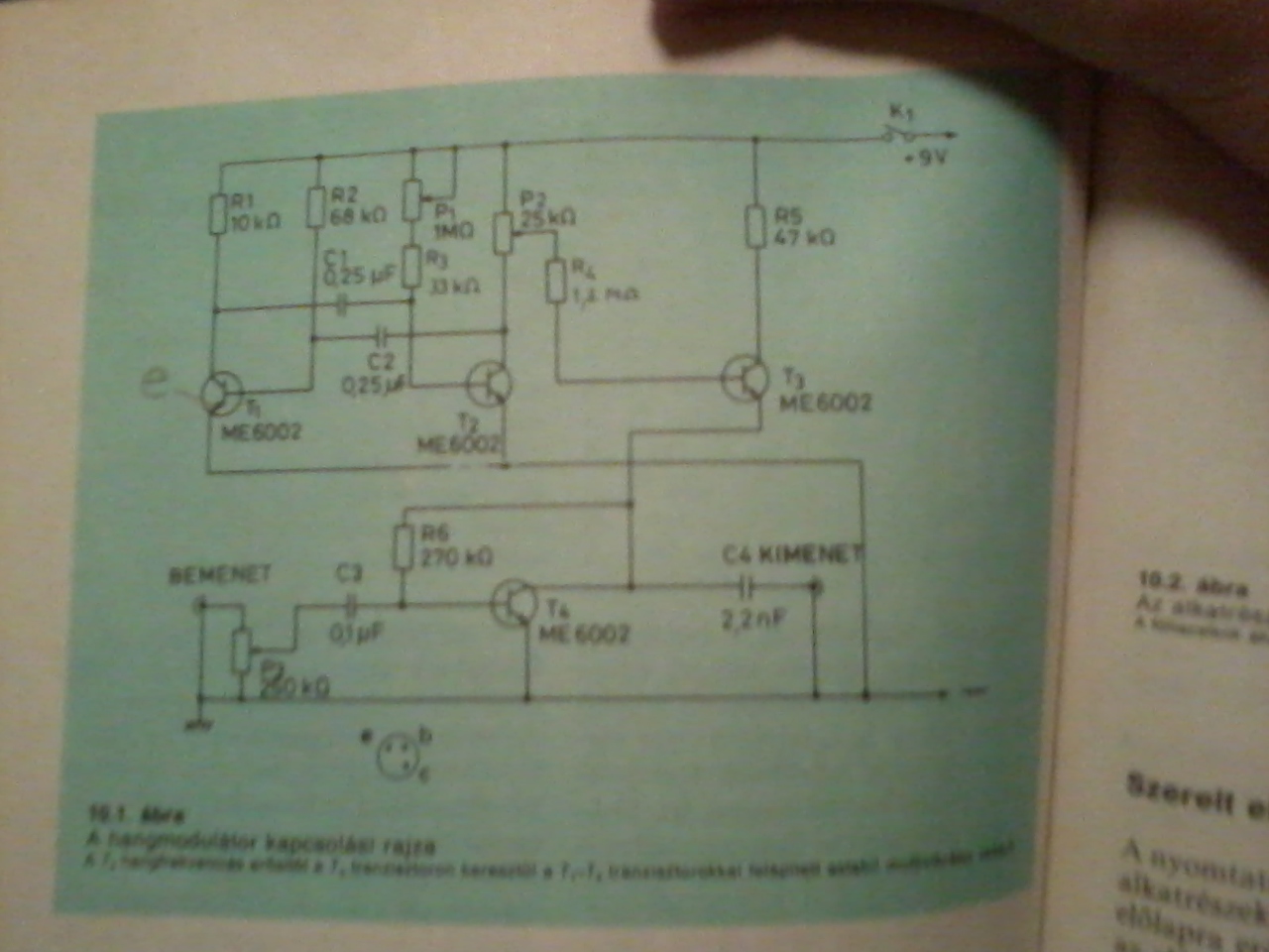 F. G. Rayer : Elektronikai játékok című könyvben van egy hangmodulátor. Elkészítettem NYÁK-ot, de nem működik. Minden stimmel, elvileg van benne egy előerősítő + az erősítős hangszóróm, de a működőképes mikrofon mellett sem akar működni. 4 olyan tranzisztor kell bele, amelyet már nem kapni (ME6002), de helyette mást használtam. Ez lehet a hiba? (A bekötés helyes.)
