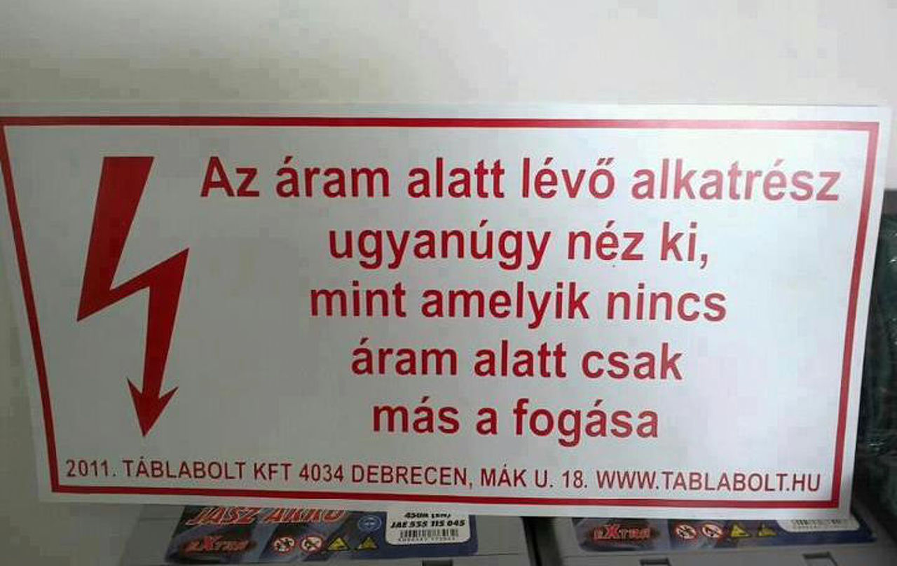 „Itt földelés nélküli dugaljak vannak.”