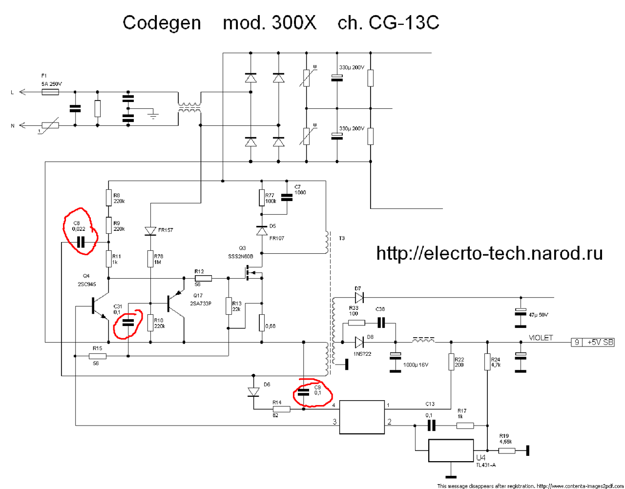 Adott egy SONY APS-28 kapcsolóüzemű táp, ami egyik napról a másikra nem kapcsolt be. Szkóppal nézve a szekunder tekercskivezetéseket, látszik, hogy egy pillanatra elindul a szaggatás (jellegzetes zizzenés kíséretében), de aztán le is áll az egész. Gyakorlatilag 90%-ban kiméregettem az alkatrészeket és mindent rendben találtam. A fő trafó szekunder oldalát kiforrasztottam, és a helyén betápláltam az áramkört labortáppal, folyamatosan emelve a feszültségeket +5, ill. +12V-ig, majd kicsit tovább. A névleges feszültségekig a hiba optó nem aktiválódik (végig 0V van rajta), a feedback optó diódája pedig 12V-nál megy át nyitásba. A kimeneten is megjelennek a megfelelő feszültségek. Tehát szekunder oldalon minden jónak tűnik. Ha bekapcsolom úgy a tápot, hogy a fő trafó szekunder oldala ki van kötve, az tönkretehet bármit a primer oldalon? Arra gondoltam, így könnyen meggyőződhetnék róla, hogy a primer oldal rendben működik-e, ui. ha a trafó szekunder oldalán látszik a folyamatos szaggatás, akkor a primer kör megfelelően üzemel. A visszarajzolt kapcsolási rajzot mellékeltem. Sajnos speciális hibrid IC a vezérlő (IC101, SIP9 lábelrendezés, 1 láb nincs bekötve, feliratok: SONY SH-B1 22BV1), amiről semmilyen adatlapot nem találtam, és PS101 jellel van még egy N50 feliratú, kétlábú TO-92 tokos valami, amin közel rövidzár mérhető, de nem viselkedik diódaként. CP101 egy háromlábú kondenzátor-induktivitás kombó, megfelelő előregyártott rajzjelet nem találtam hirtelen, így kondiként ábrázoltam.