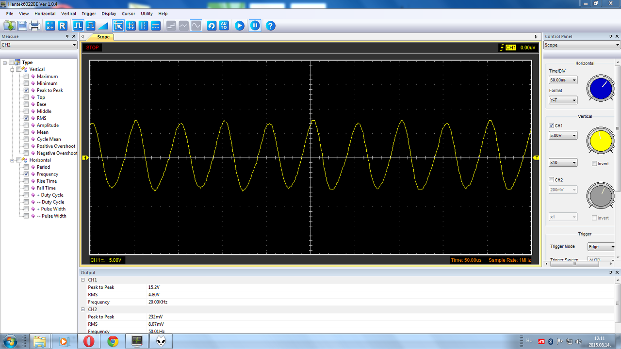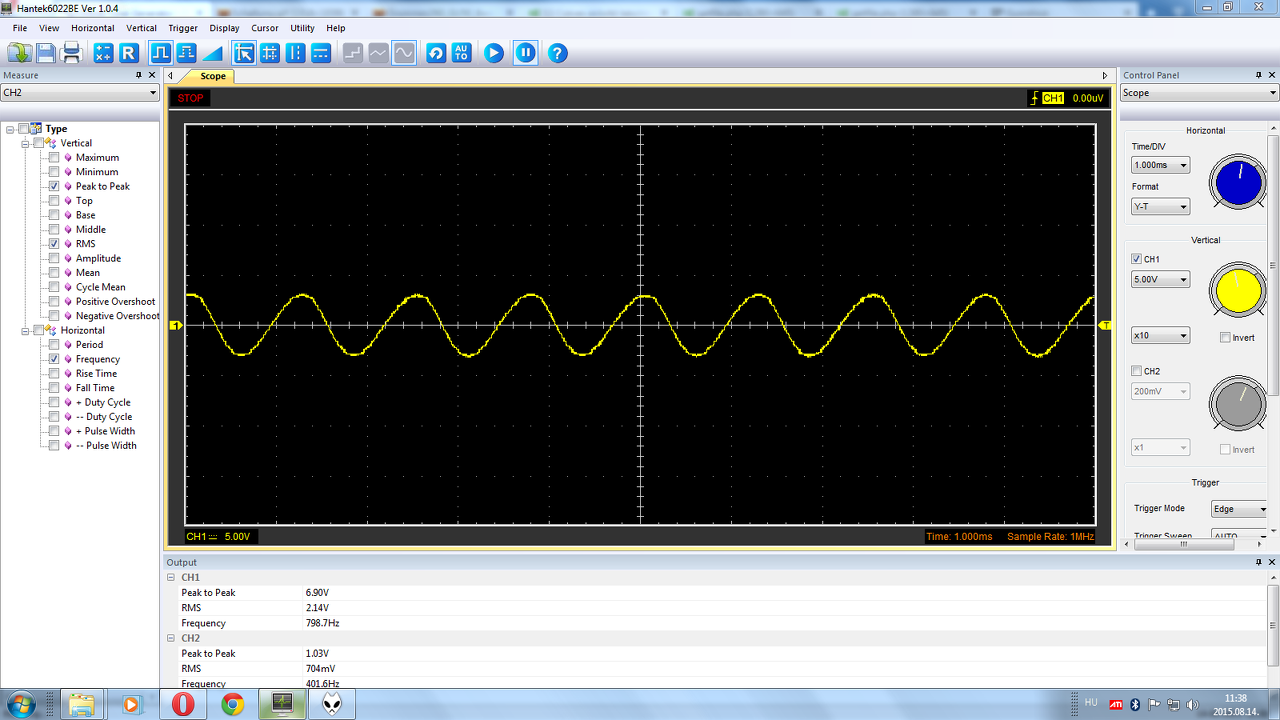 Ha ok, akkor a kimenetén is szép szinusznak kéne lenni.