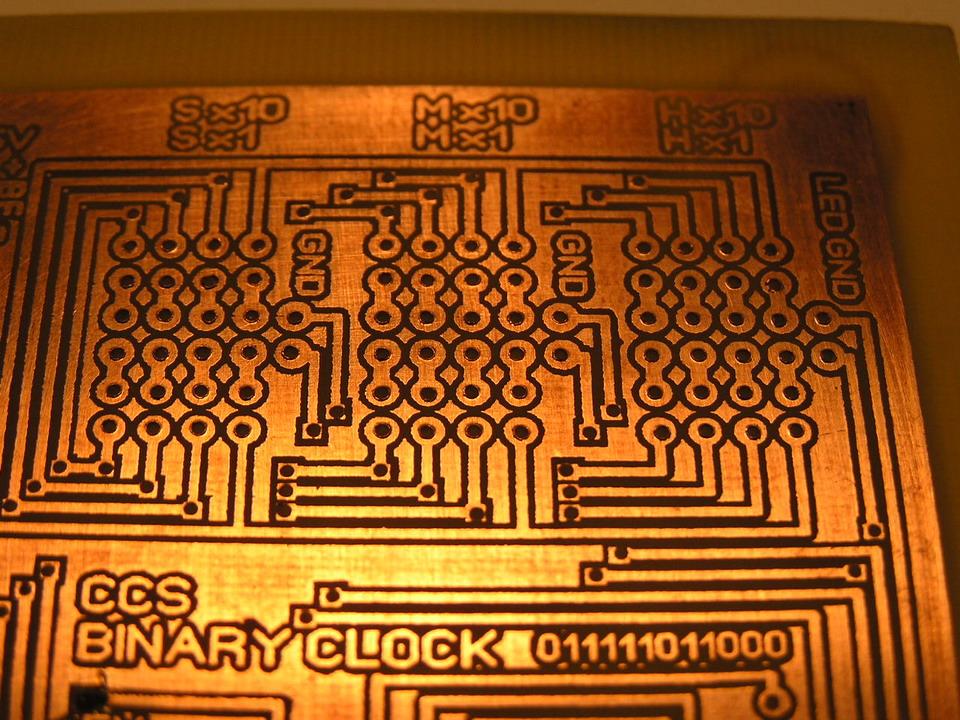 Vicsys kapcsolásának köszönhetően kész van a karácsony óta bedobozalatlan óra. Mert bizony mindíg a dobozolással van a probléma... Egyik nap aztán szert tettem egy tolltartós kvarcórára 200 Ft-ért. Kidobva a működőképes belsejét, végre lett hova raknom a bináris órát. Mivel a panelra raktam egy 5V-os stabilizátort is, így egy telefontöltő trafóval vígan elketyeg. A változtatás annyi az eredetihez képest, hogy 16F627A prociba égettem be a programot. Úgy éreztem memória pazarlás egy 628-as.