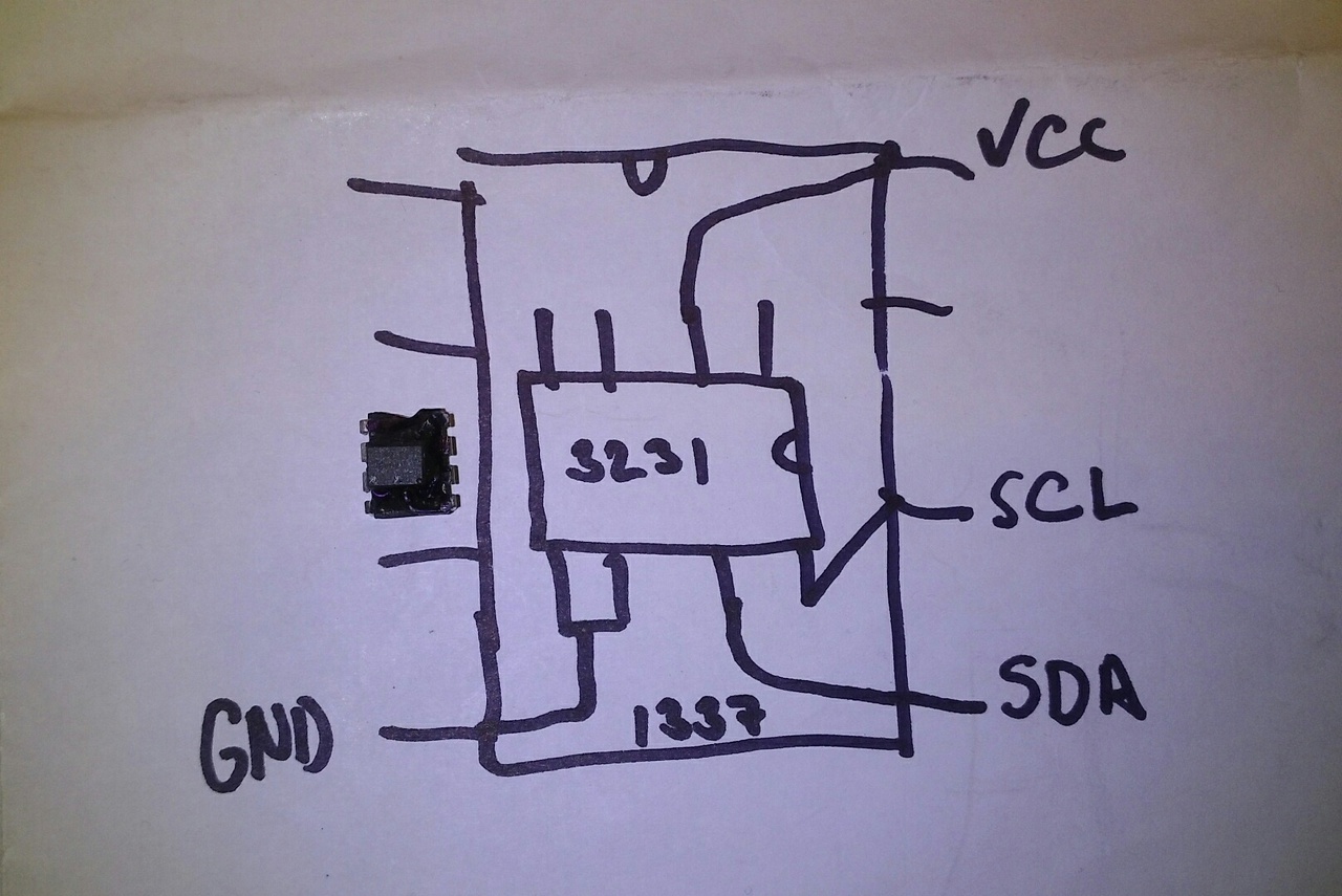 A DS3231MZ SO8 tokozású verziójához készítettem egy kis adaptert, amellyel a DS1307 vagy DS1337 DIP8 tokozású ic helyere berakhatóvá vált. Az ötletet a Spikkenzie Solder Time alapjaira épült karórám pontosítása adta, amelyben a DS1337-et sikeresen cseréltem DS3231Mz-re. (a külső kvarc pontossága eléggé esetleges , pláne a miniatűr tokozásúaké). Próbáltam a Mule V2 DS1307-es változatával, de sajnos valami nem működik. Nem tudom, hogy kapcsolásban kell-e valamit változtatni, vagy a program használ olyan funkciót, ami nem teszi lehetővé, hogy a másik rtc-t használjam? ( ha jól láttam a két rtc azonos címen érhető el és a regiszterei 00h-07h-ig azonosak )