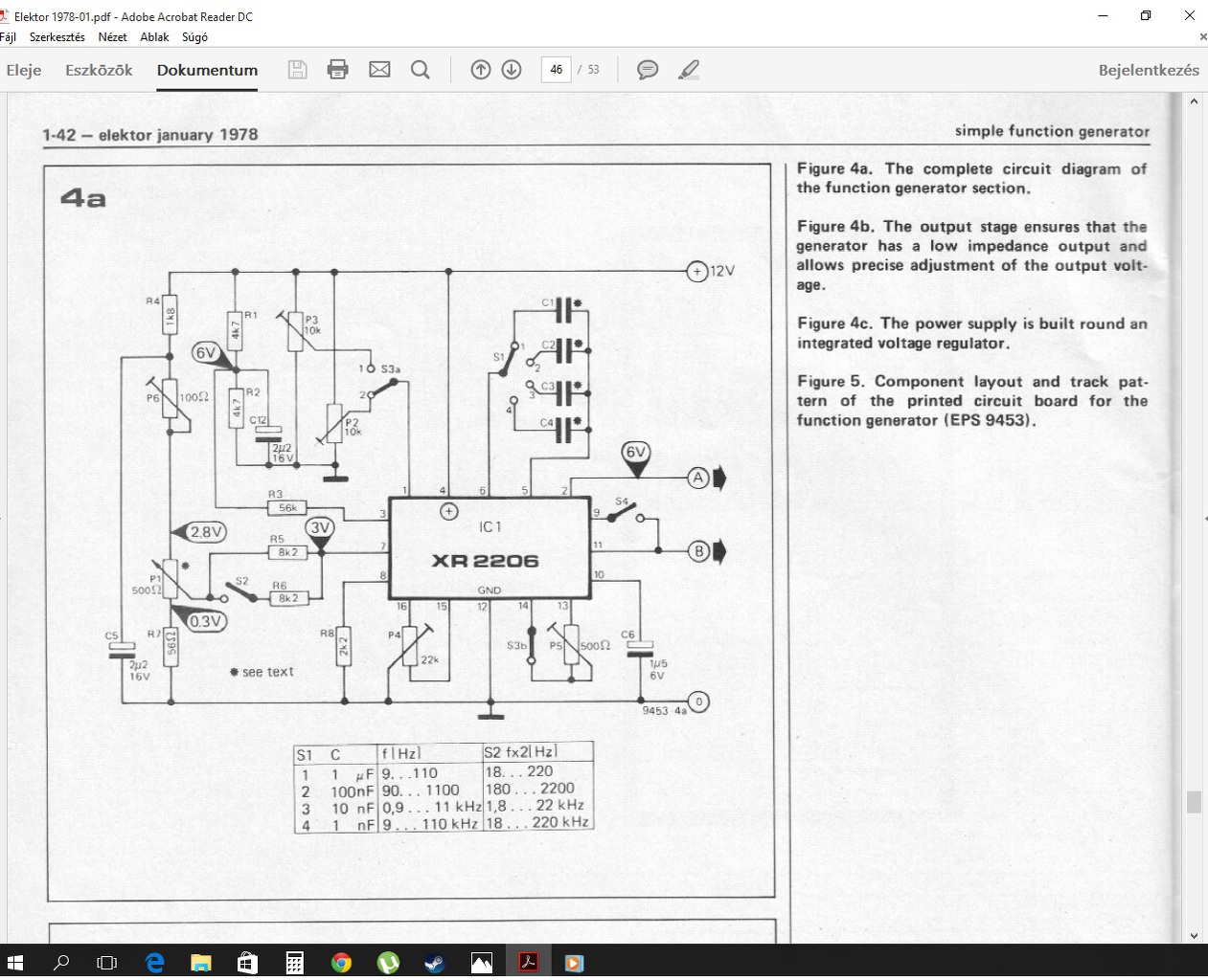 A frekvencia a C4-C7 értékeitől függ. Én betettem még egy lépcsőt az 1nF alá, egy 1pF-os kondit, így eggyel tovább tudom tekerni a gombot és nagyobb a tartomány.