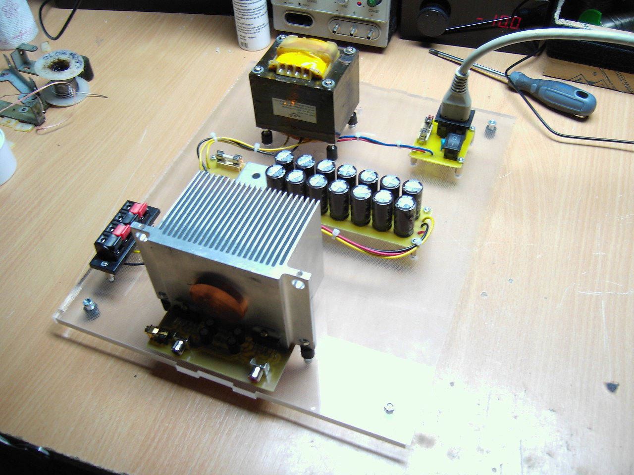 Egy gyors deszkamodell LM3886-al, a nyákok picit randák lettek, de csak a széleik. Továbbra is az a véleményem, hogy nem rosz, de ícés hangú.