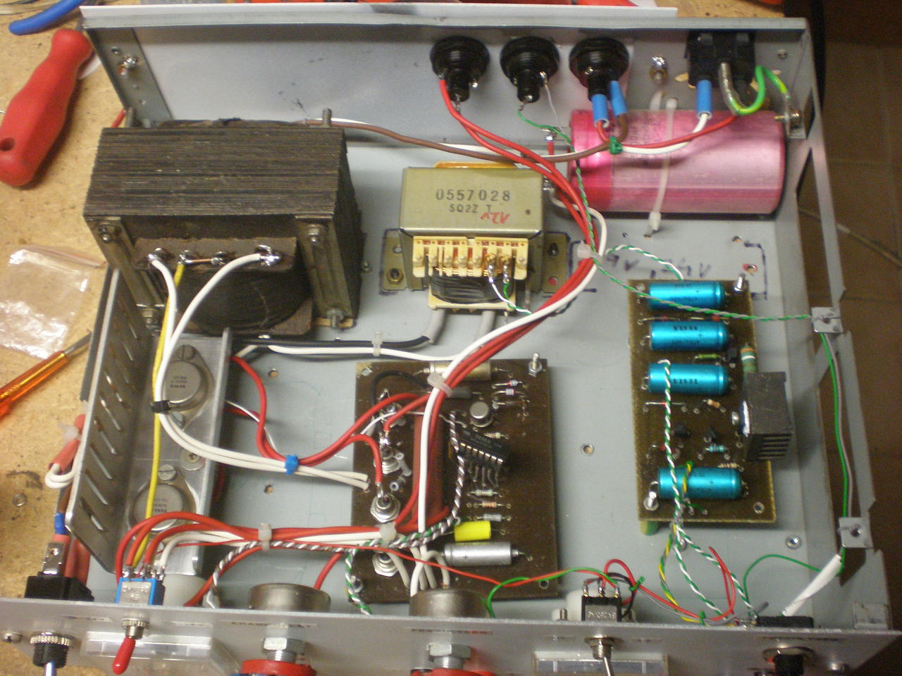 Sajnos igen, a panelből az IC foglalat ki van vezetékelve. A panelterv a régi MAA723-as IC-hez készült, úgy volt, hogy ebben is az lesz, de nem sikerült beszereznem csak a DIP tokos változatát (MAA723CN). Ez egy régi konstrukció, ami a környezetemben több példányban működik. Valamikor a 80-as években az Amatérske Radio folyóiratban jelent meg. Az alkatrészek szedett-vedettek, legtöbb bontott, abból kellett megépítenem amit itthon találtam a ,,fiókban". A két műszer így is jelentős anyagi kiadás volt. Valójában azért van amper skála a voltmérőn, mert elérhető (tűrhető) áron nem találtam volt- illetve ampermérő párost, így két ampermérőt vettem és az egyiket átalakítottam. Ez van sajnos.