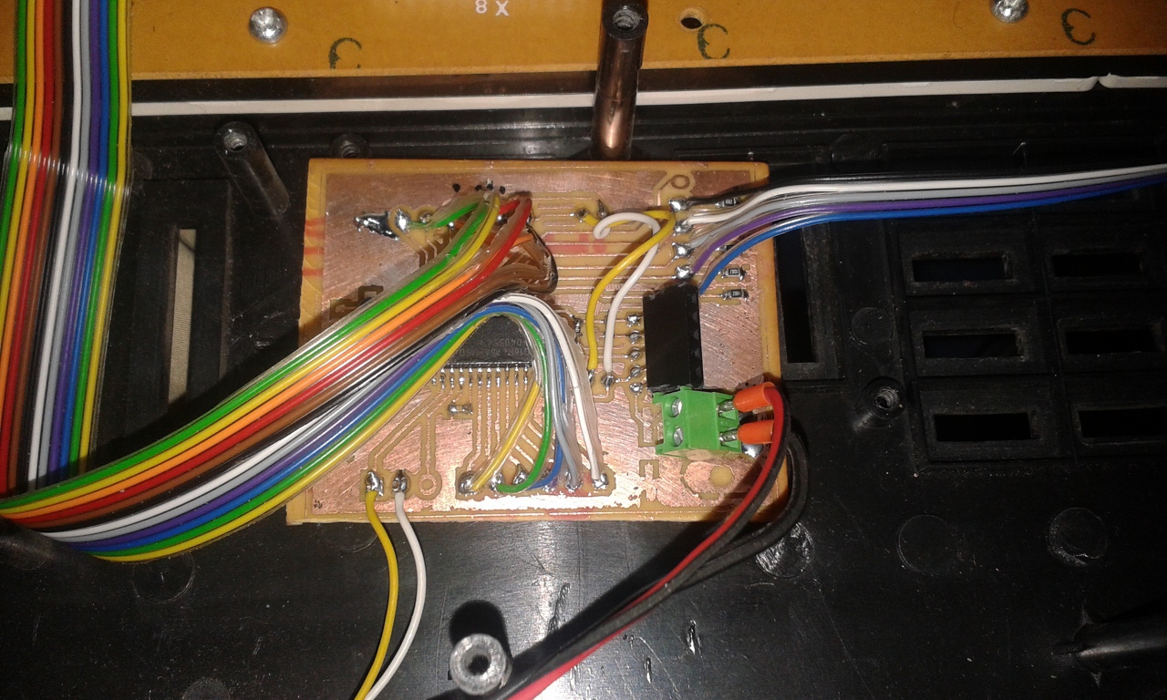 Játék szintetizátor billentyűzet átalakítása pc-vel összeköthető, de önállóan is hangot kiadni képes polifónikus GM MIDI zongorává...most már 4 kezest is lehet rajta játszani, és minden hang megszólal. Lelek egy PIC16f876a mikrovezérlő, és egy vs1053b hang ic. Használhatósága tökéletes, egy erősítőt szeretnék még tenni bele, h a gyári hangszórokon is szóljon, ne csak 3.5 jack line out legyen rajt. Tervben van a hangerő, és hangszer váltásilehetőség is, jelenleg csak zongora van kihasználva.