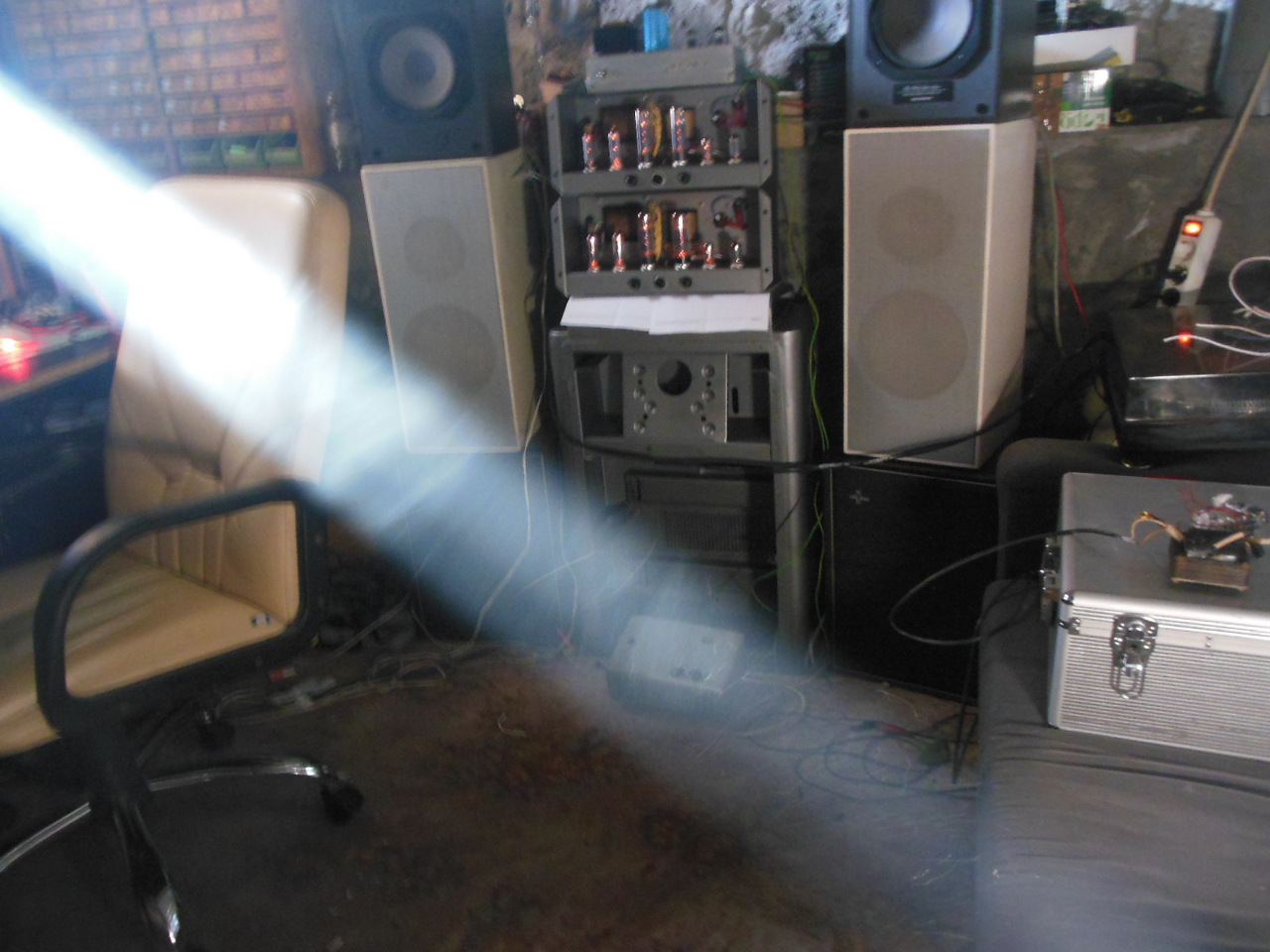 Akkor fogok sepregetni, ha asztalon működnifog minden vezérlőstől. Addíg mégcsak tesztüzemnek hívom. Ami rendetlenségnek tűnhet a csillagponton kívül, az a hangdobozcsatlakozók, illetve a bemeneti csatlakozók levegőben lógása. A alketrészlábakat sem hajlítgatom a helyükre a végleges állapot eléréséig.