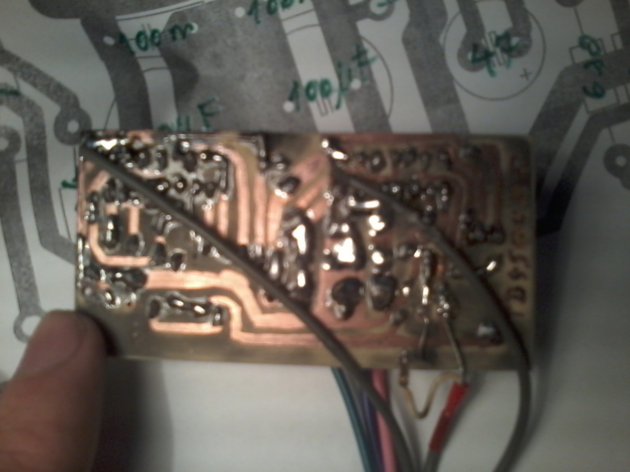 A jelforrásom telefon. Sajnos nem vasalás, hanem ezt kinyomtattam tükrözve, kifúrtam ahol kell és összekötöttem filcel. Már összevetettem rengetegszer de minden ugyan az. Megyek mérek még valamiket. Megmérem még egyszer nem-e véletlen felcseréltem a 100k-t a 100 ohmal, lehet megmagyarázna pár dolgot.