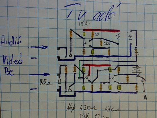 Ez a kapcsolásom már pár napja üzemkész volt! Mivel hangot nem visz, ezért ez a nagy kínlódás... de nem jutok semmire... az ellenállások közé róbáltam illeszteni. Eredmény: fekete kép, hang nuku! Ismét S.O.S! Egy antenna erősítő nem hiszem, hogy jó megoldás! Pedig jól indult a dolog! Ötlet?