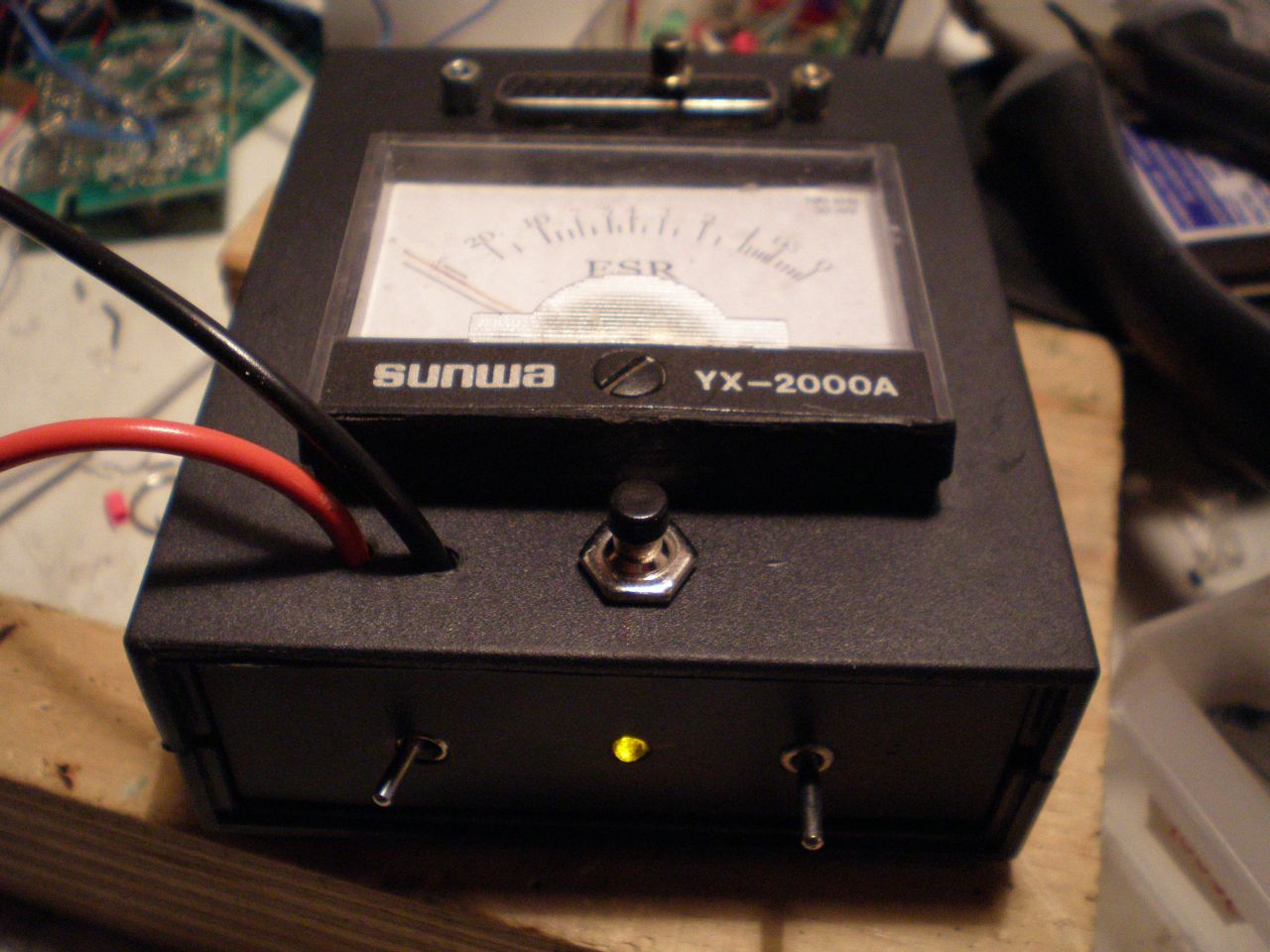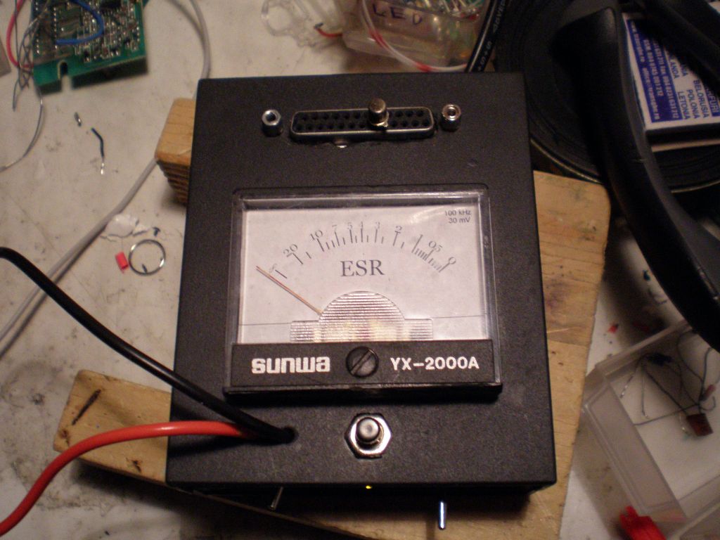 Közbe végre elkészültem az ESR mérőmel, ami egybeépült egy fet-tranzisztor teszterrel. Ez utóbbi nem produkálta a várt eredményt, még eldöntöm a sorsát. A beállitás messze nem lett tökéletes, mert a deperz miatt egy csomó értéket meg kellett piszkálni, de legrosszabb esetben fél ohmot téved. A kapcsolók beragasztása nem túl esztétikus, de miután az egyik kapcsolóra nem kaptam anyát, akkor már a másikat is beragasztottam.