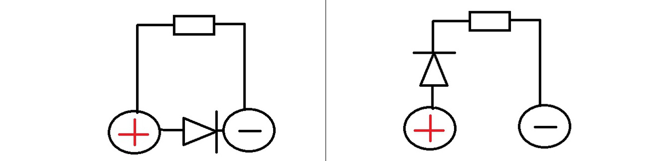 A dióda mindegyik képeden nyitóirányban van bekötve, tehát vezet, a többi pedig már az egész befoglaló áramkörtől függ. Akkor lehet csak bővebben írni ehhez, ha az is adott.