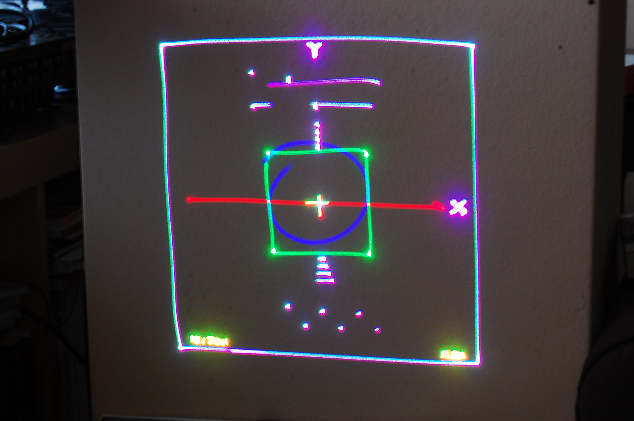 A kapcsoláson ezeket kijavítom, egyébként teljesen jól működik a "Sound Card Correction Board". Összességében működik a driver is, egy kis probléma van még, az ábrák eléggé "darabosan" mennek. Ezt már eddig is láttam a szkópon, most be is bizonyosodott, hogy nem túl jó. A driver kódján még csiszolgatnom kell, a hangkártya bufferelését elég nehéz megoldani, de ez már az én problémám lesz... A kapcsolási rajzot meg a nyáktervet kijavítom, írok róla egy kis cikket, és publikálom. Reményeim szerint jövő héten, ahogy időm engedi! A drivert egyelőre így hagyom, amint lesz ötletem a "szaggatás" kiküszöbölésére, megcsinálom a módosítást, de addig is ezt a verziót lehet használni. Csatoltam egy képet az ILDA tesztről, meg egy kis videót is készítettem, azon látszik mennyire "darabos" Egyébként hozzá nem értőknek fel sem tűnne szerintem.Youtube videó