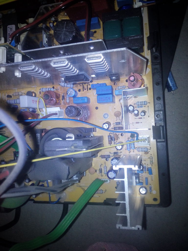 Nincsen, kedden ahogy hazajöttem, keresek a neten hozzá rajzot. Elmondom akkor dióhéjban Neked, hogy 15-ért vettem két hete és azóta hoztam 5-ért egy másikat donornak, ami hiányos, a tuner és a tápellátás egy része hiányzik. Életemben nem szereltem plazma tévét, gondoltam panelcserével, vagy esetleg kondicserékkel helyre tudom állítani. A két panelt amit mutattam Neked, azokat kicseréltem, más nem történt egyenlőre. A Neten tegnapelőtt nézelődtem picit így nagyjából értem hogy melyik panel mire hivatott, ezért mertem nekiállni. Most viszont nem tudom merre, gondoltam itt kérdezek mielőtt nekiállok valaminek feleslegesen. Szerszámok vannak. Azt észrevettem az egynapos működése óta hogy eléggé melegszik, ezért jutott eszembe hogy talán egyik másik kondi már feladta..
