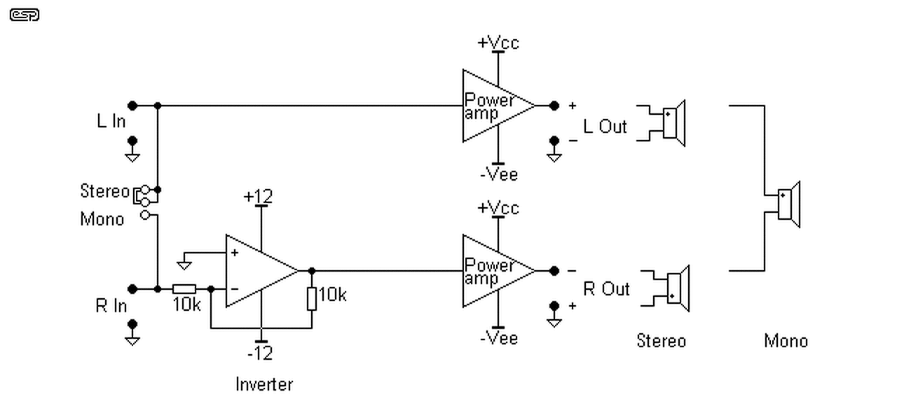 Így csak hídba kötve jó a kapcsolás. Sztereóban az egyik erősítőd ellenfázisban lesz, kb fél óra zenehallgatás után megfájdul a fejed, ráadásul a hangkép úgy lesz elcseszve ahogy csak lehet. Ha így akarod sztereóban hallgatni akkor ki kell hagynod a fázisfordítót.