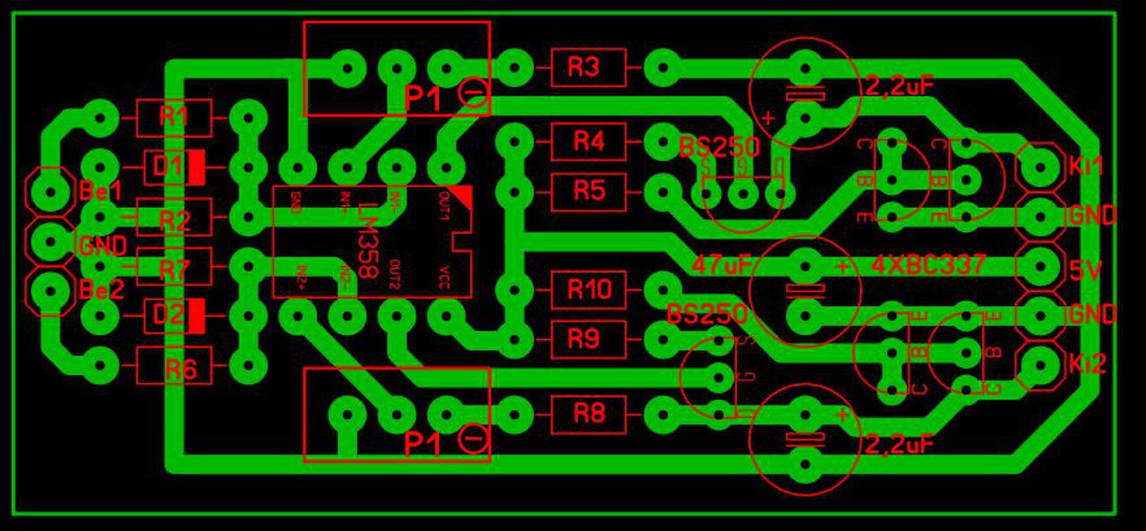 Hello! A vezetősávok igen vékonyak, legalább is a GND és 5V vezetékei. A tápfeszültségről pedig lemaradt a pufferkondi..