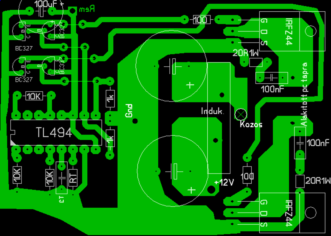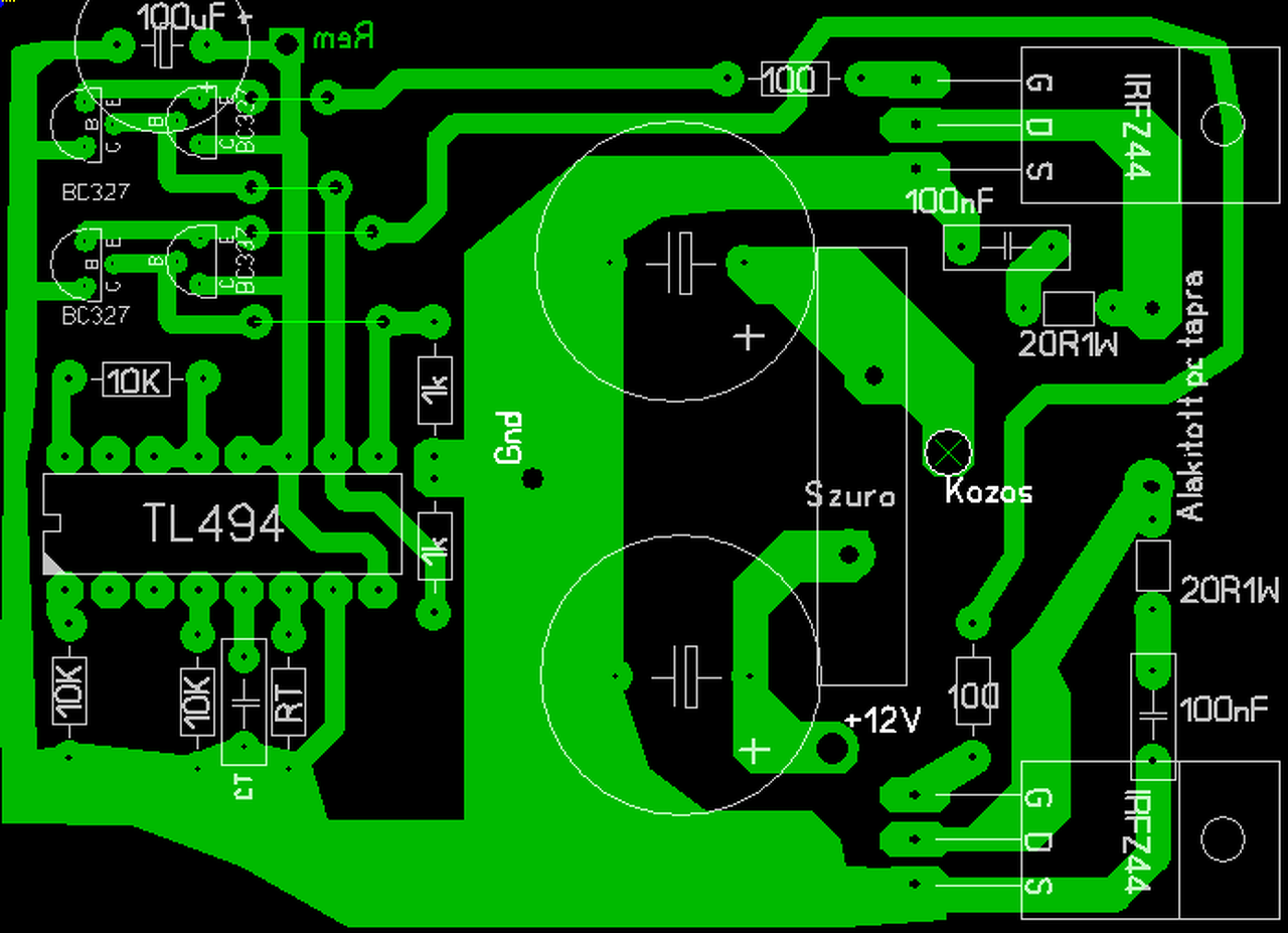 A két drain lábnál ill a +12-nél szélesitsd meg a nyákot amennyire csak lehet.