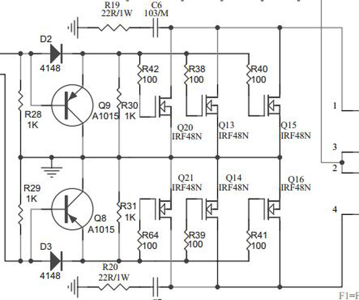 A fet mindkét Drain láb és a Gdn közzé én ajánlanék még egy 20ohm 1W-os és 100n kondit sorba bekötni.
